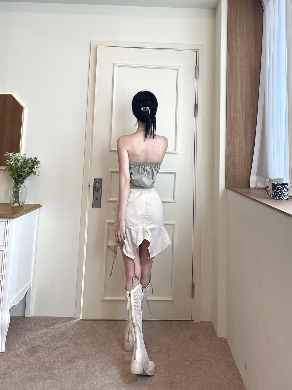 밑단 언발란스 기장 러플 디테일