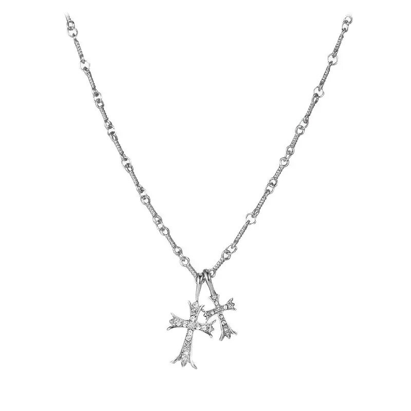 더블 크로스 큐빅 네크리스