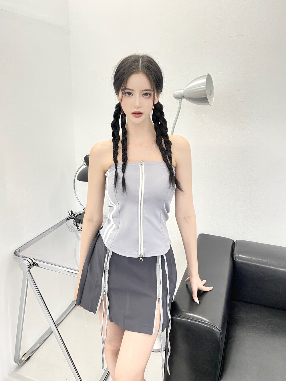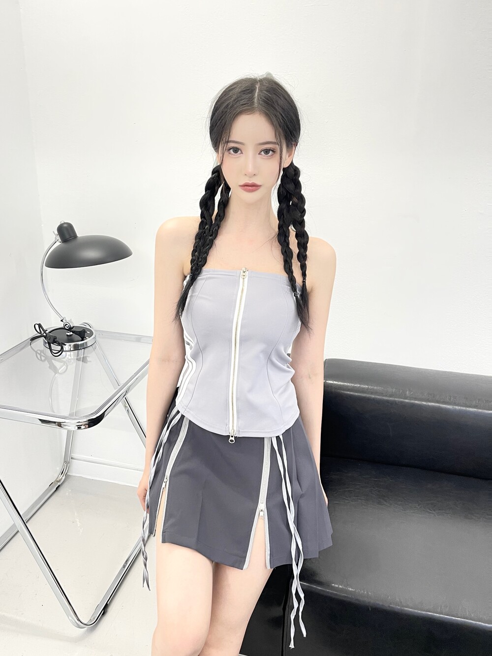 전면부 중앙 투지퍼로 자유로운 슬릿 연출이 가능