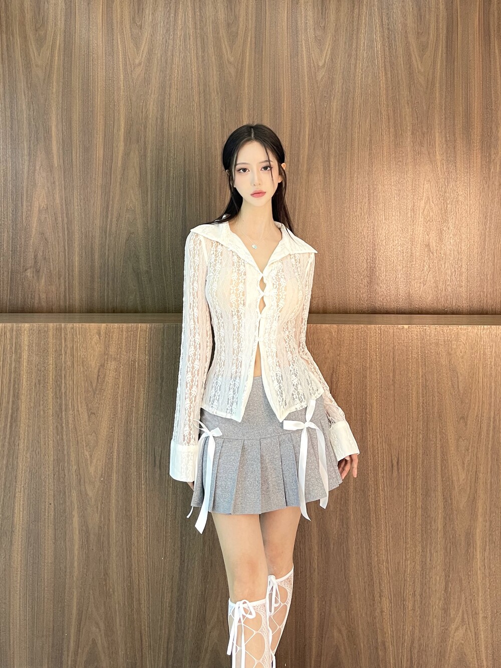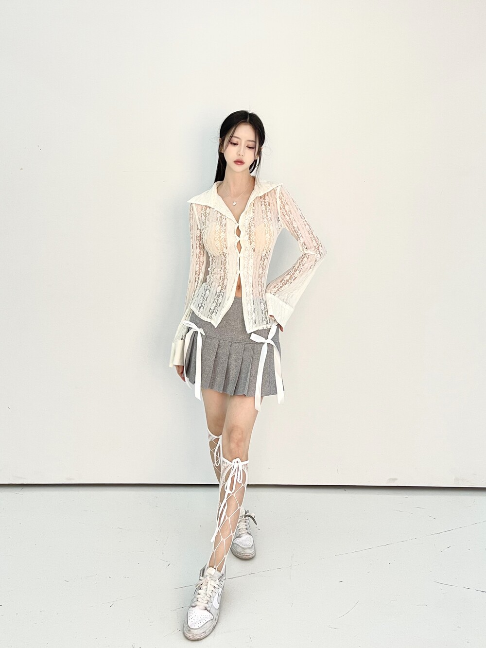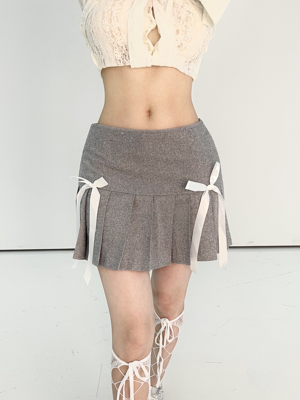 러블리한 리본이 포인트가 되는 플리츠 스커트