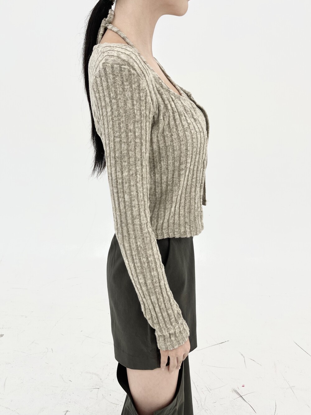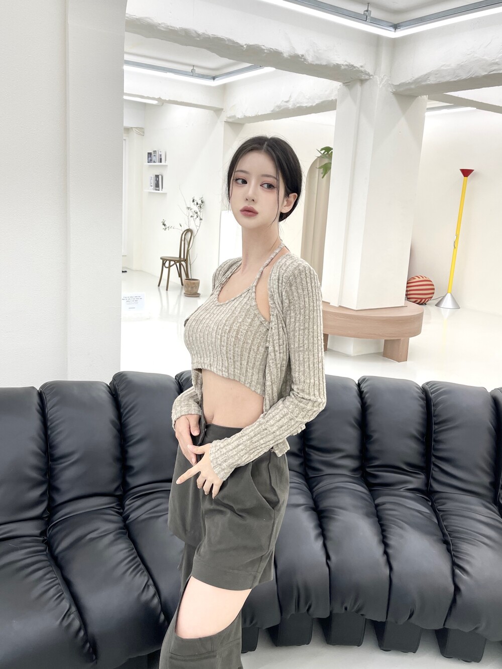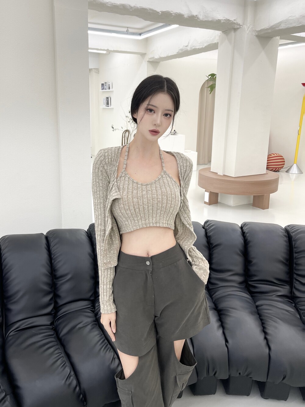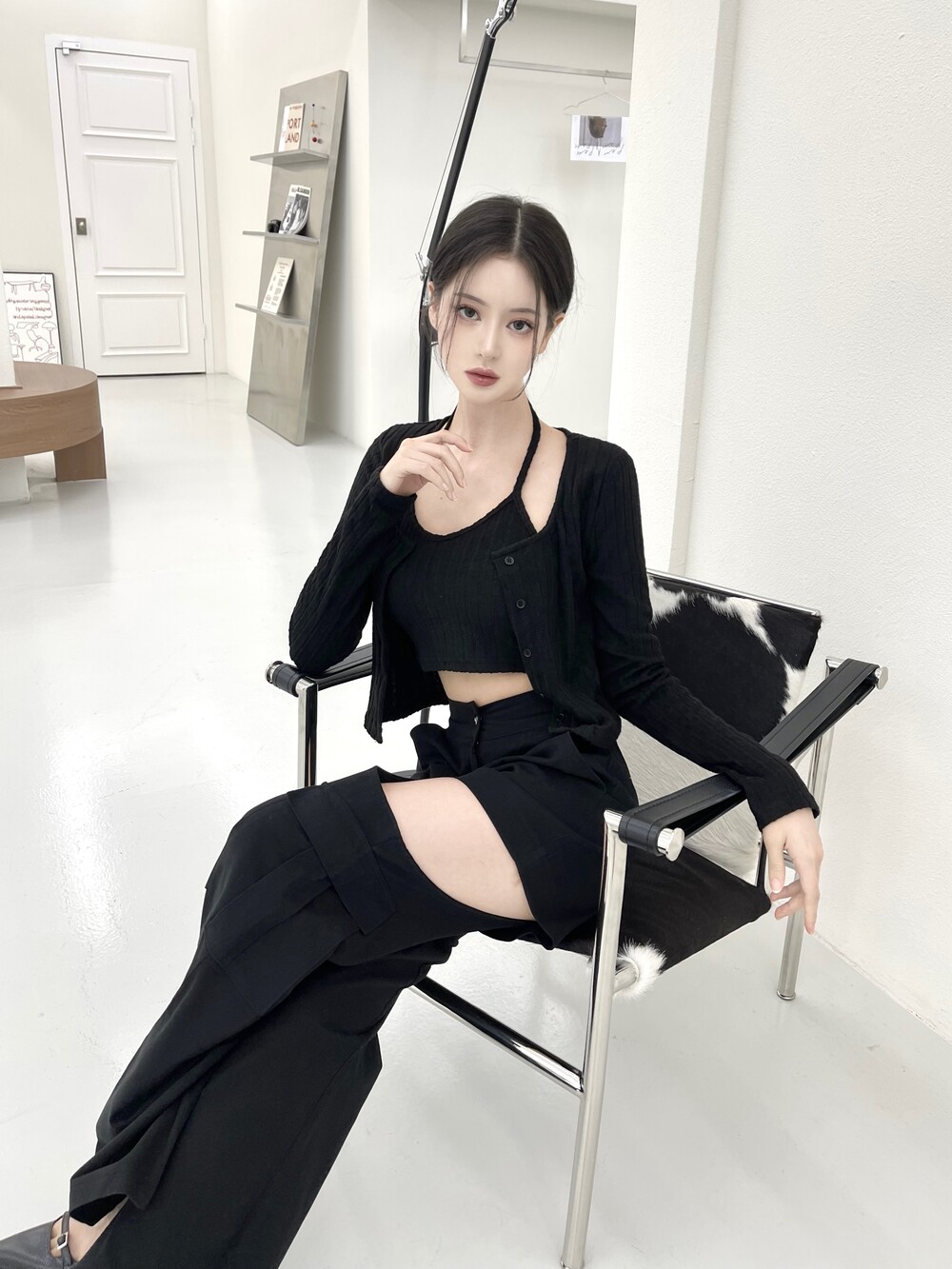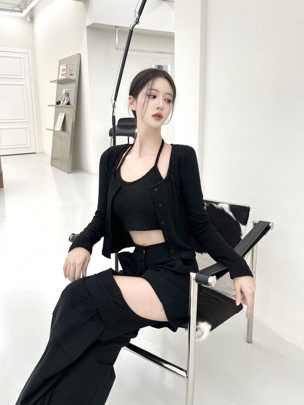 유니크한 무드의 골지 스트랩 탑 - 가디건 세트