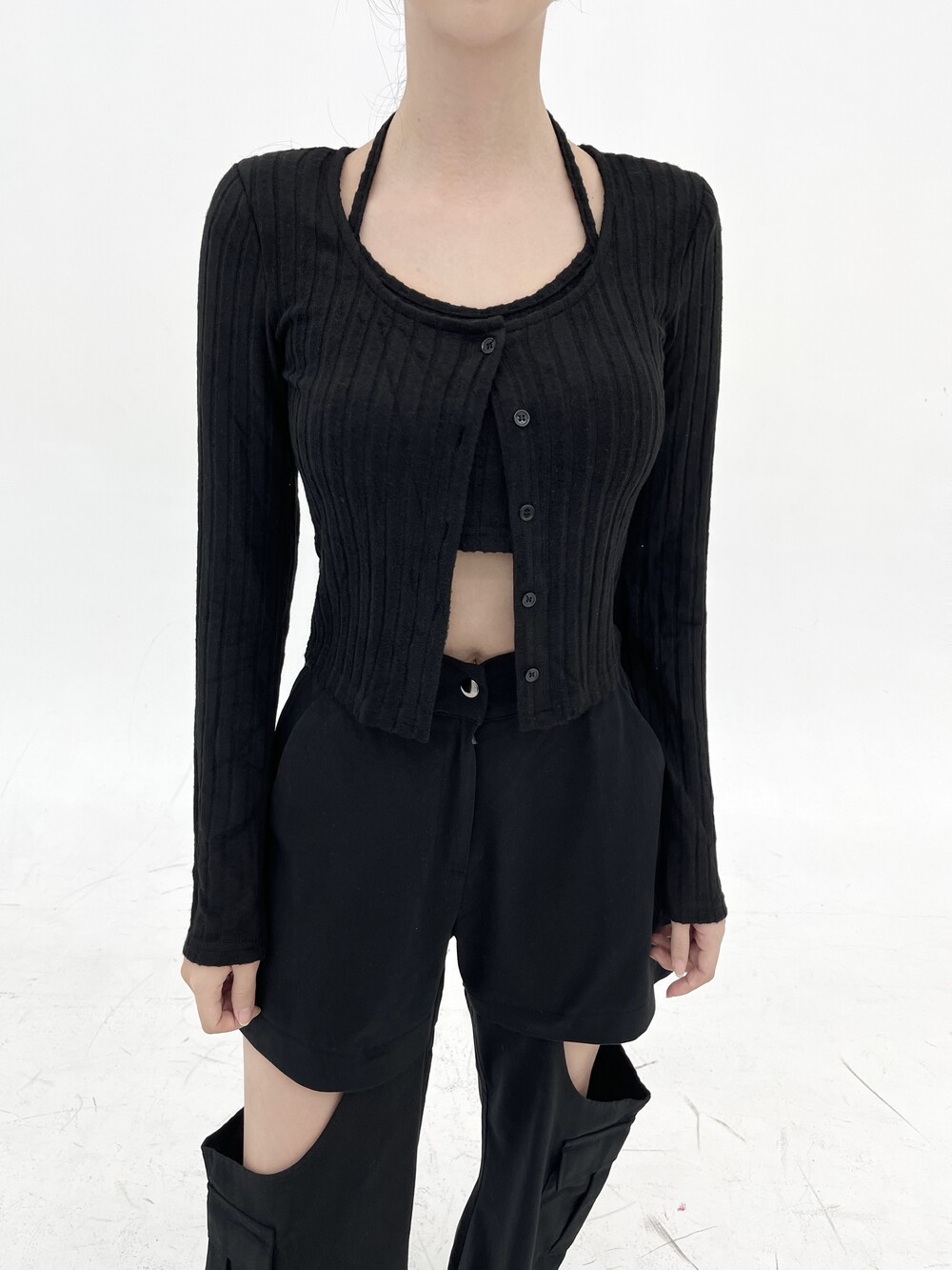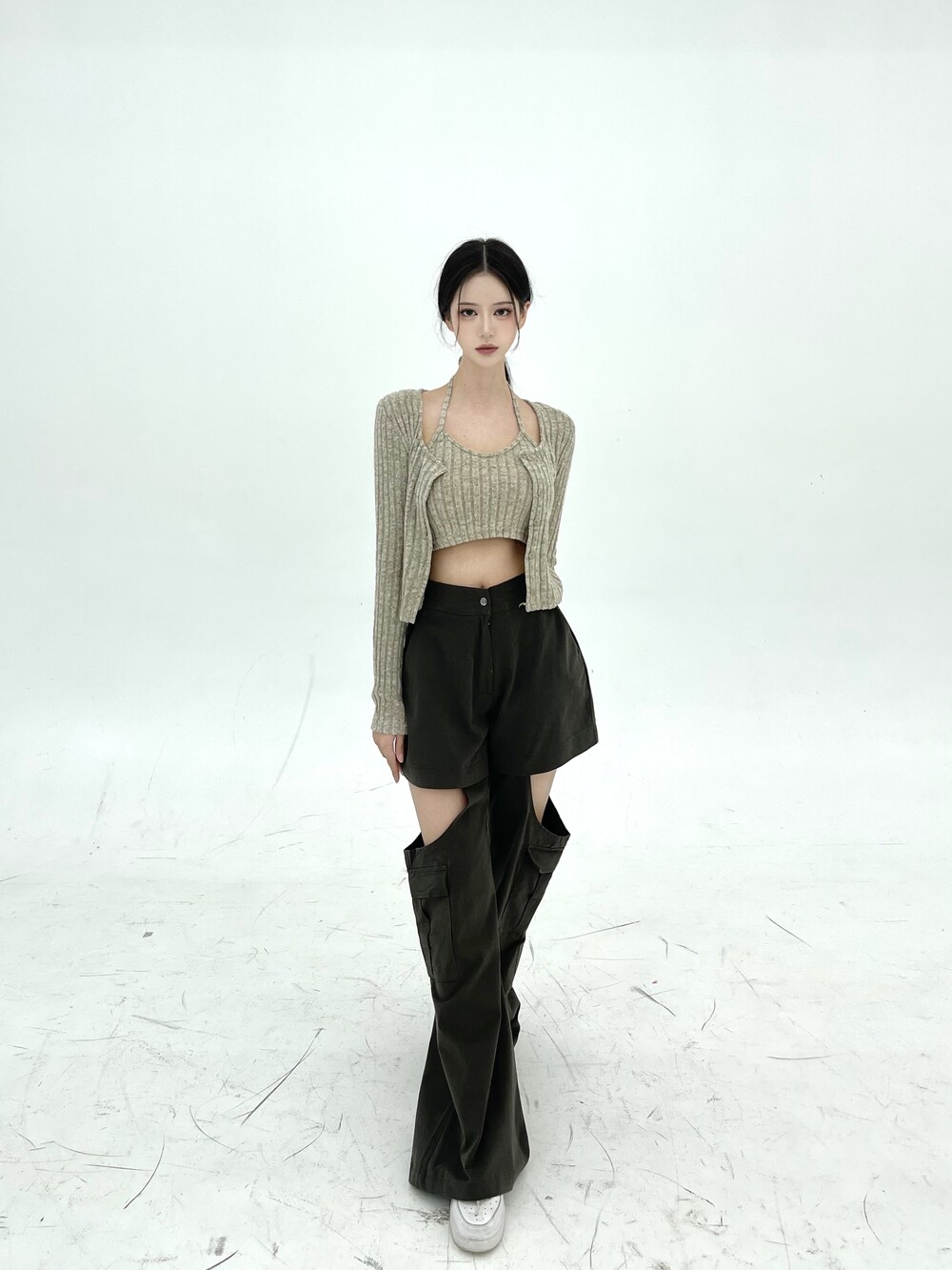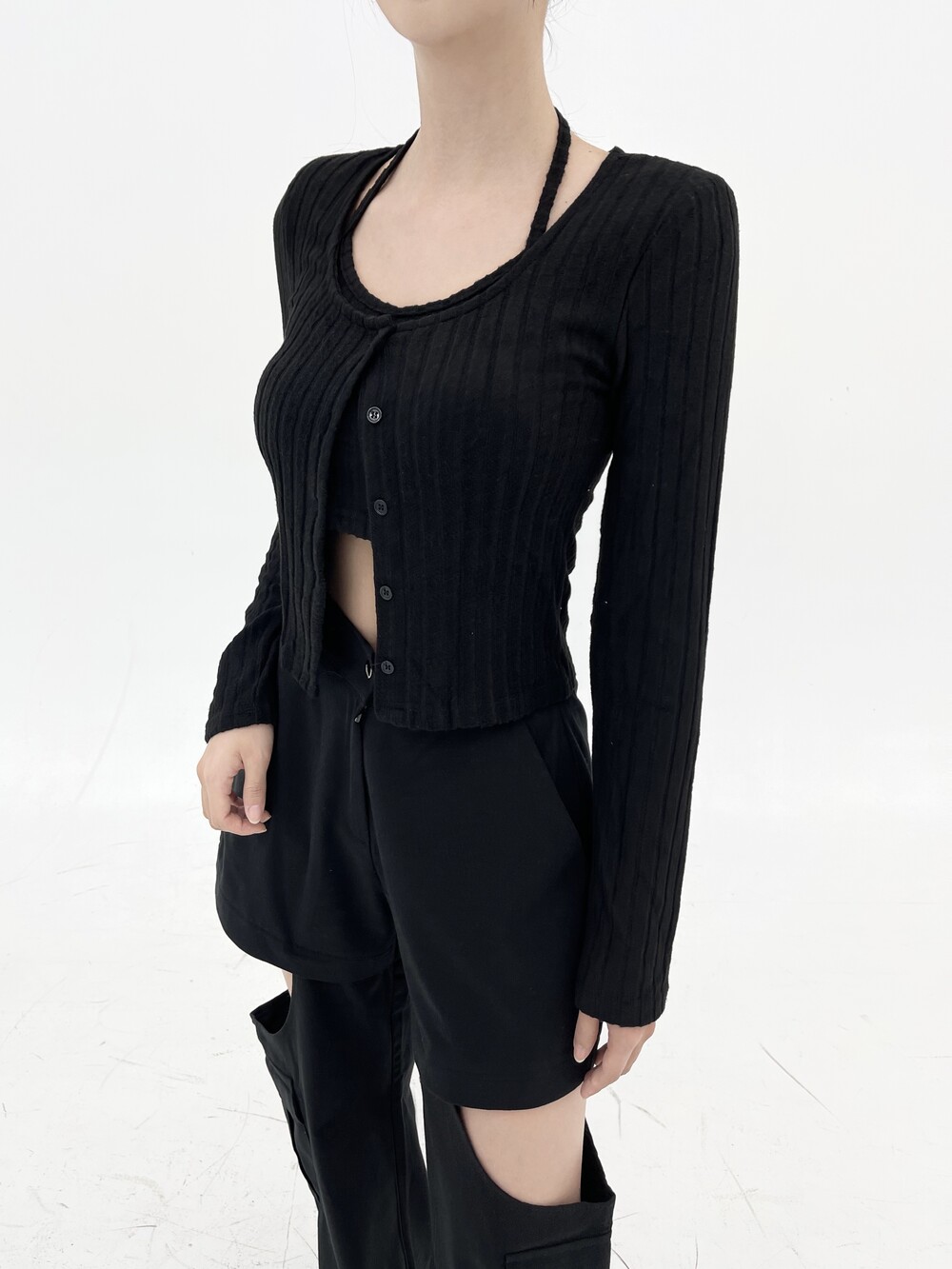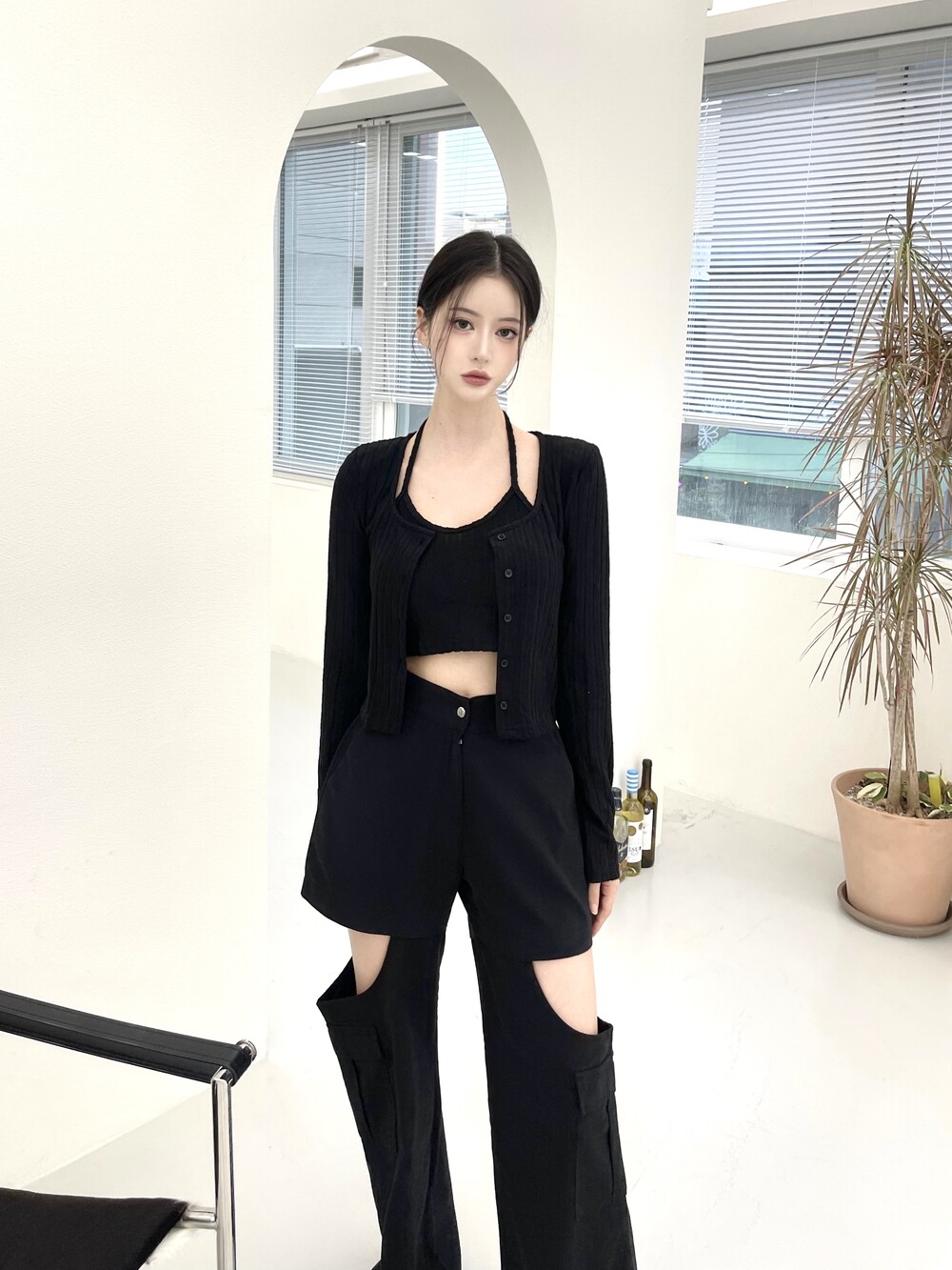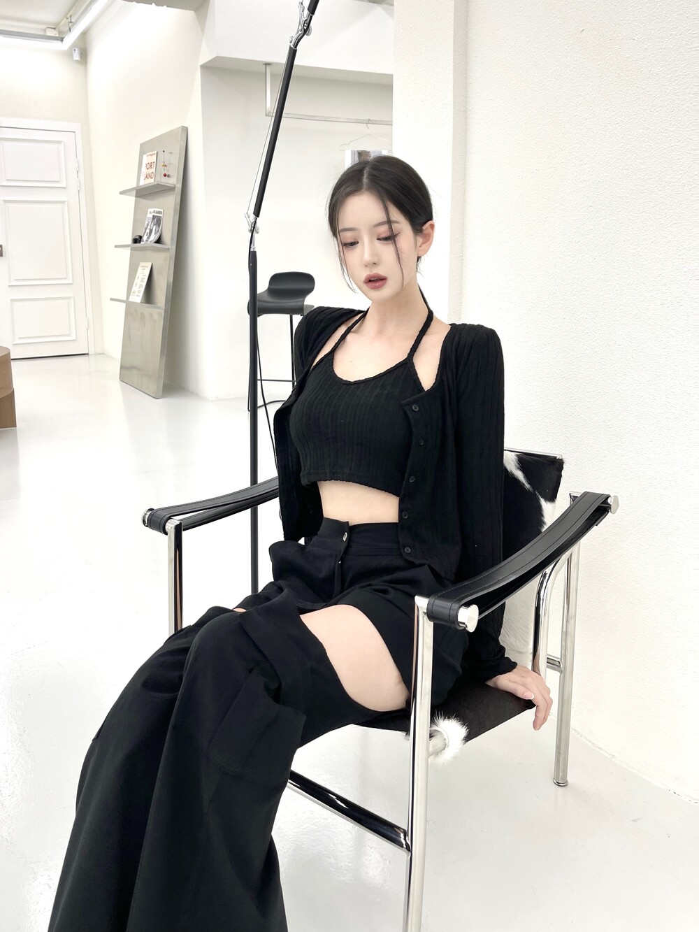 유니크한 무드의 골지 스트랩 탑 - 가디건 세트