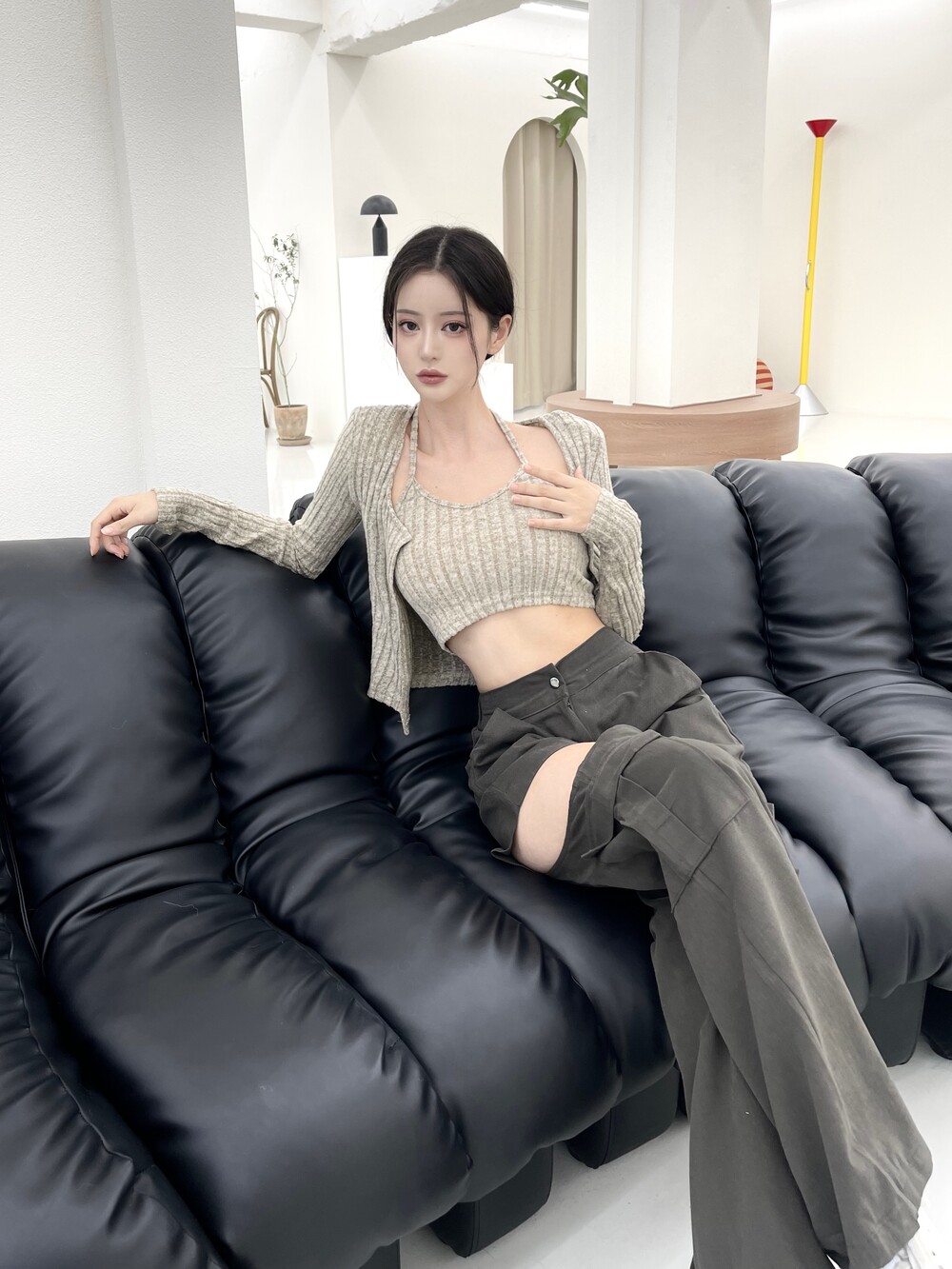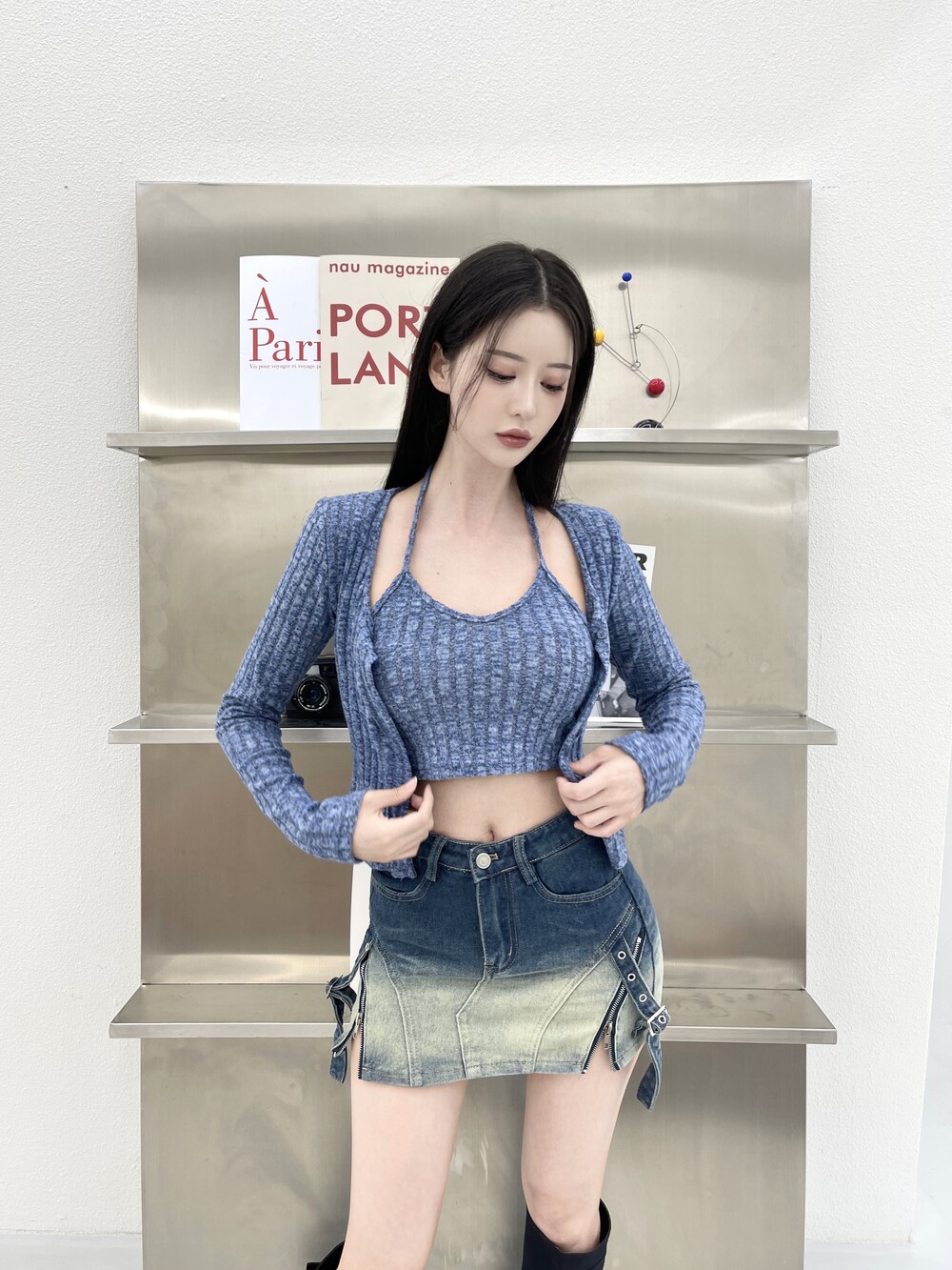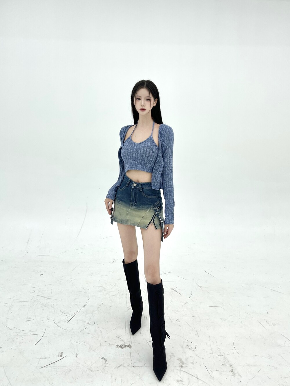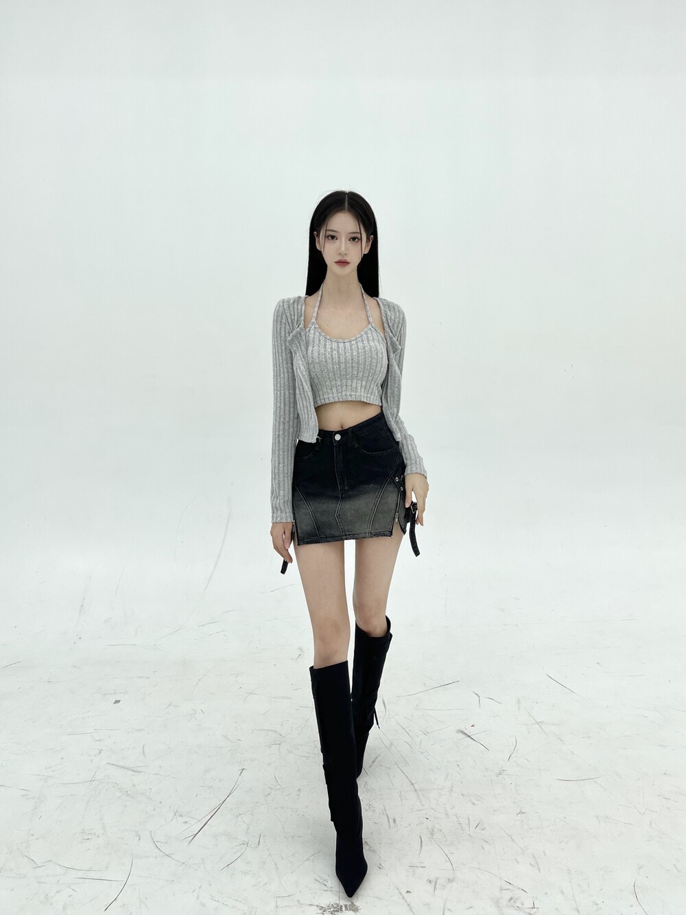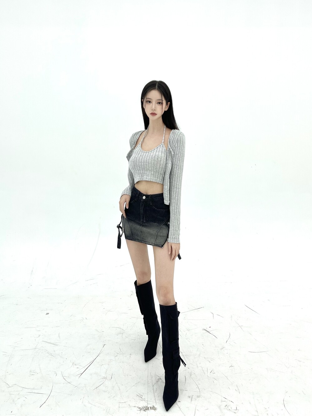 유니크한 무드의 골지 스트랩 탑 - 가디건 세트