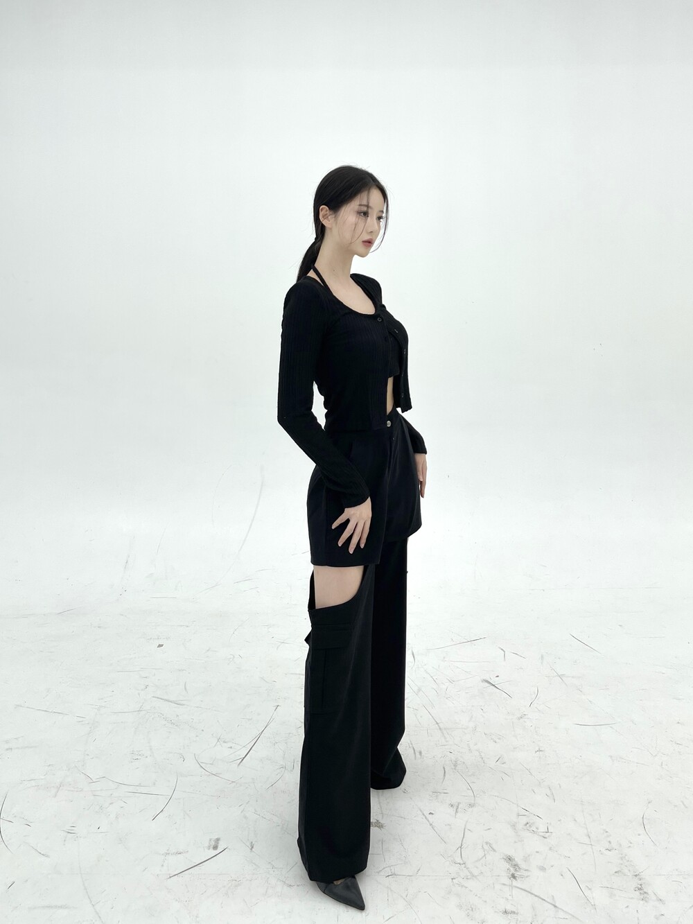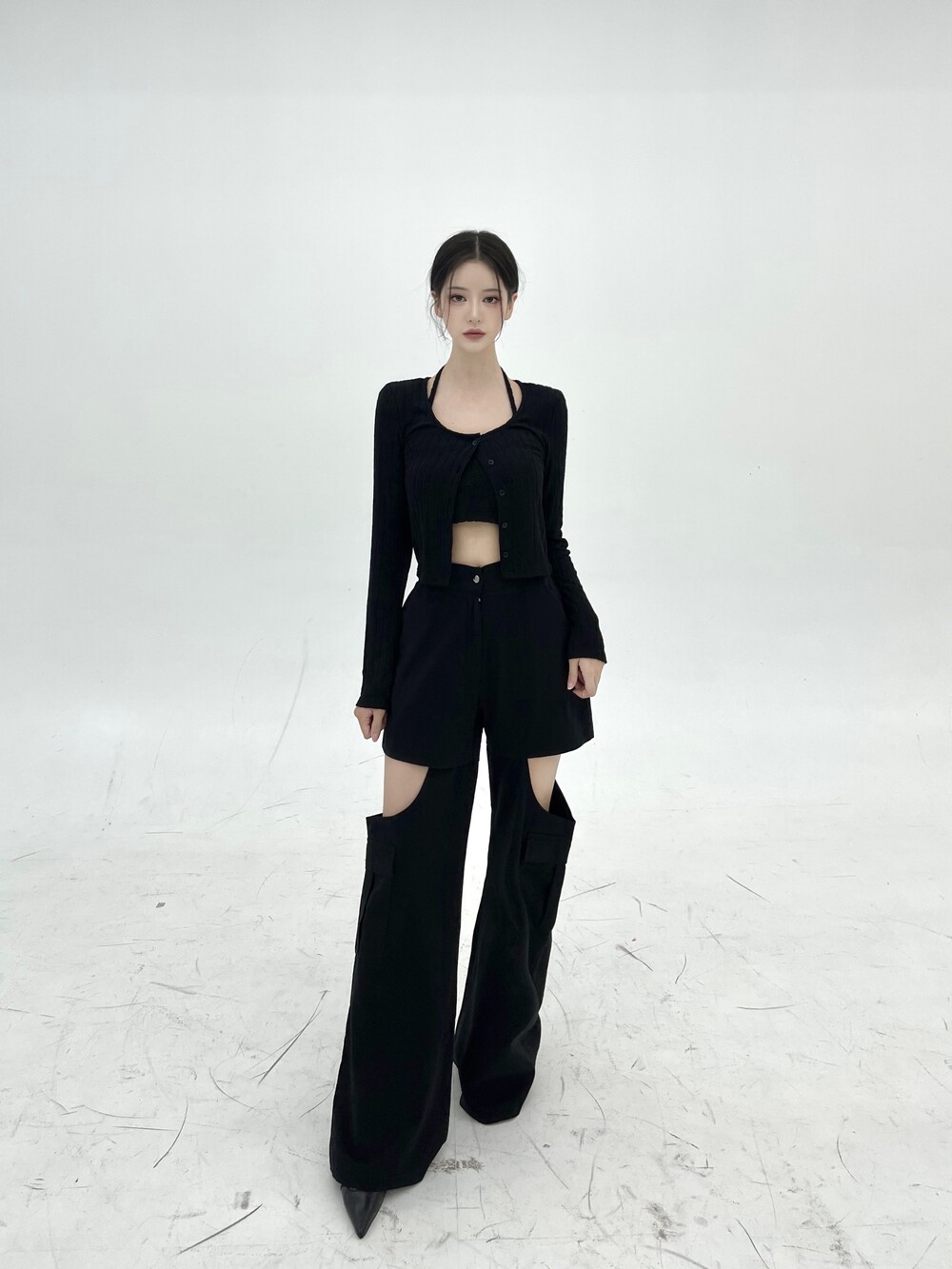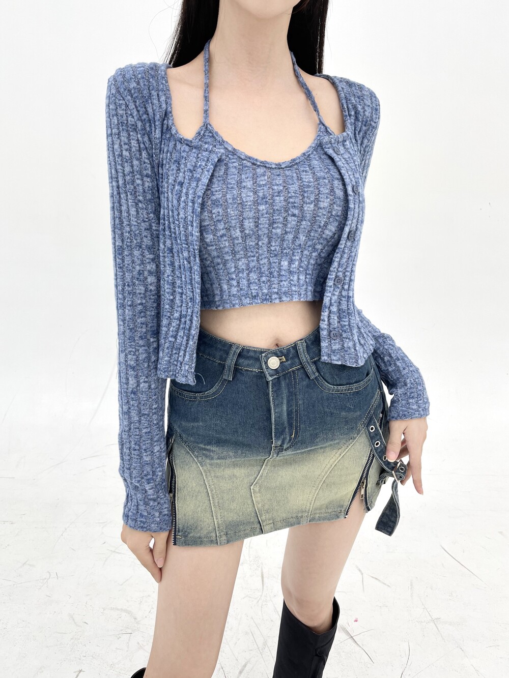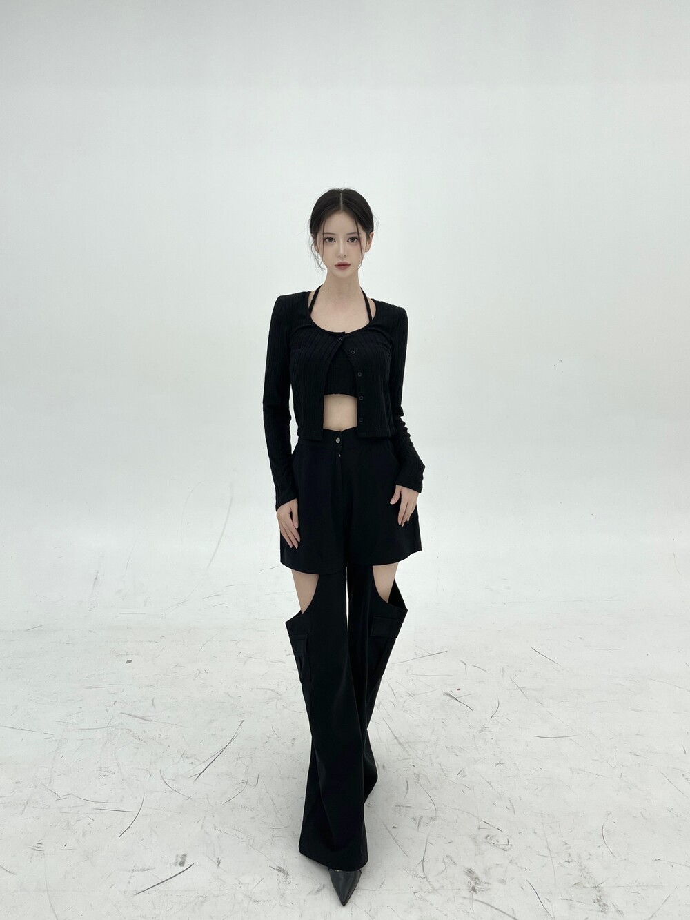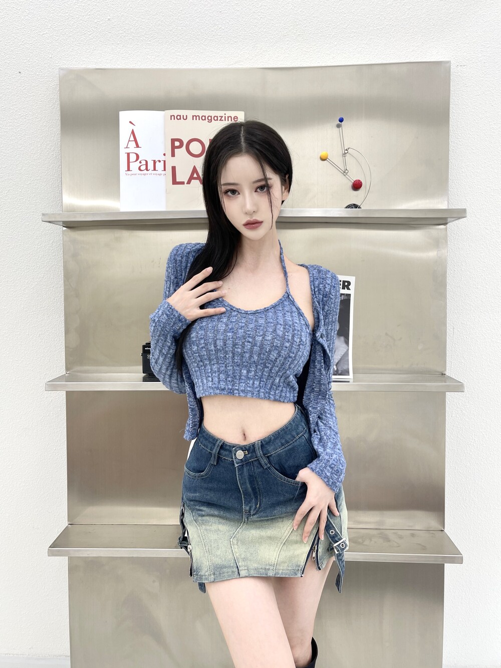유니크한 무드의 골지 스트랩 탑 - 가디건 세트