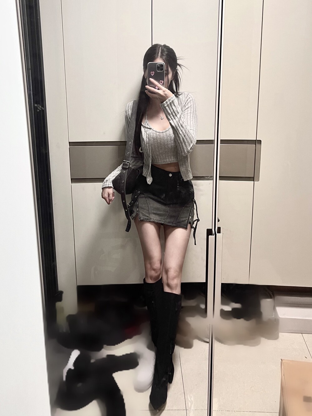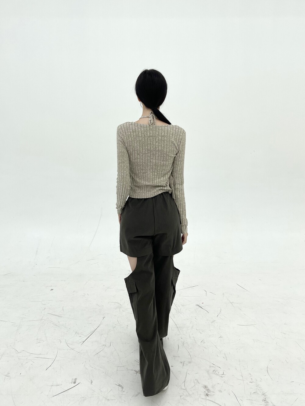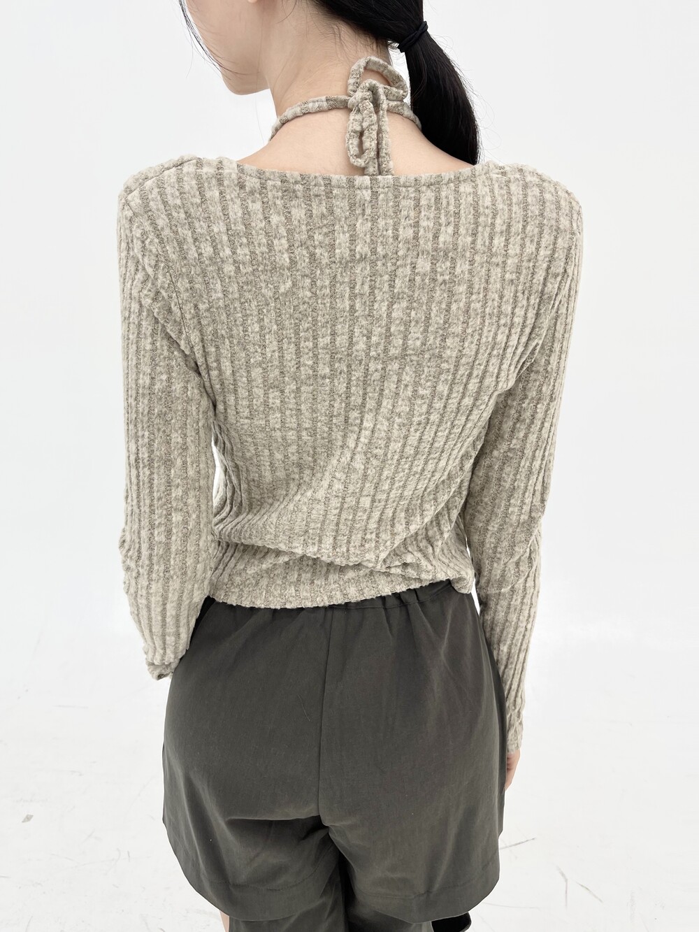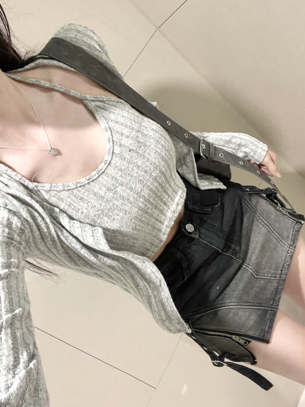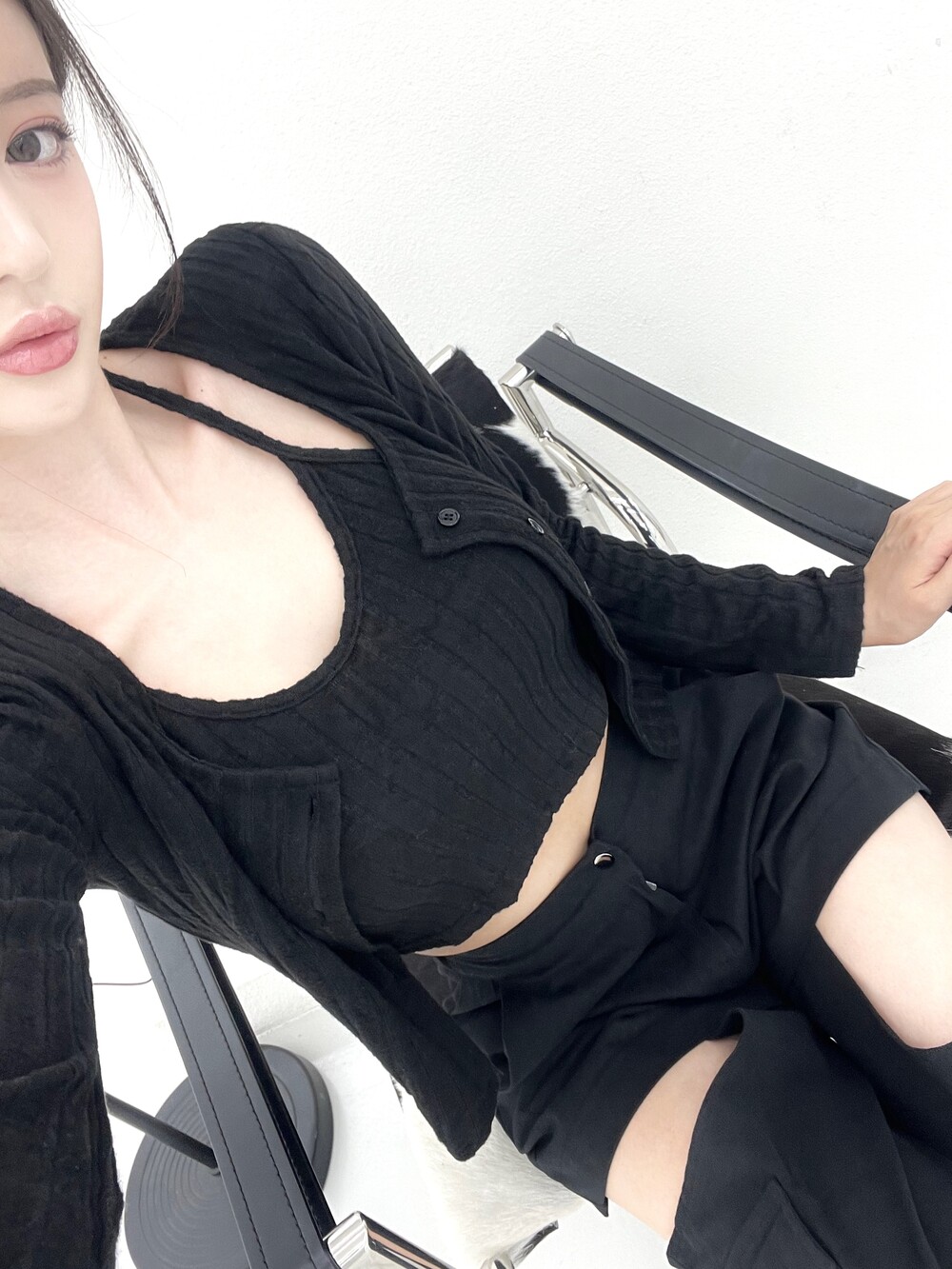 유니크한 무드의 골지 스트랩 탑 - 가디건 세트