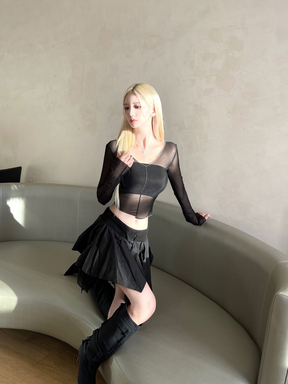 안이나 밖에 레이어드 탑을 매치 후 착용