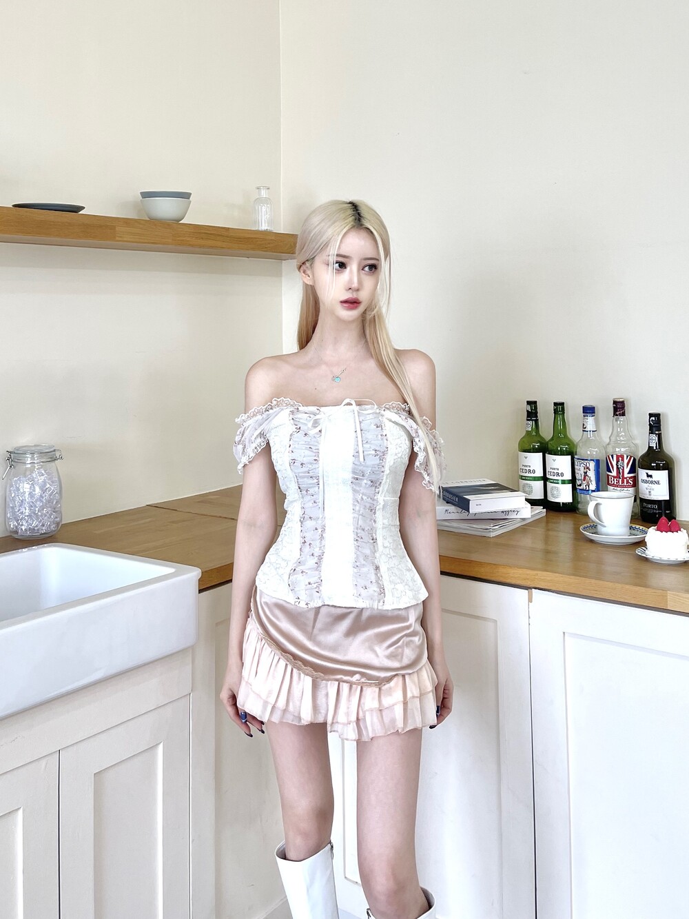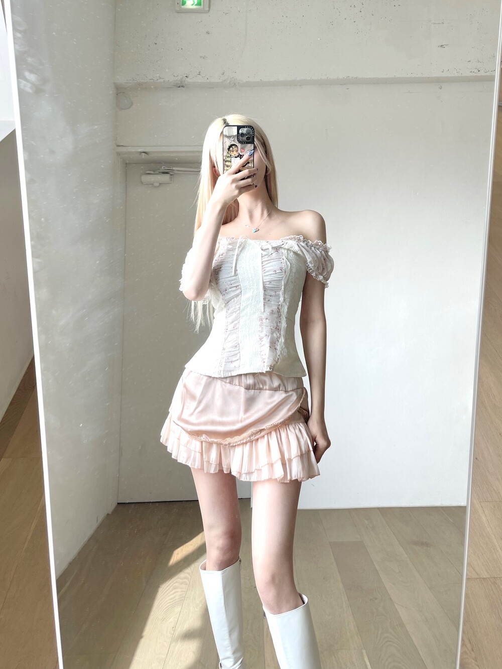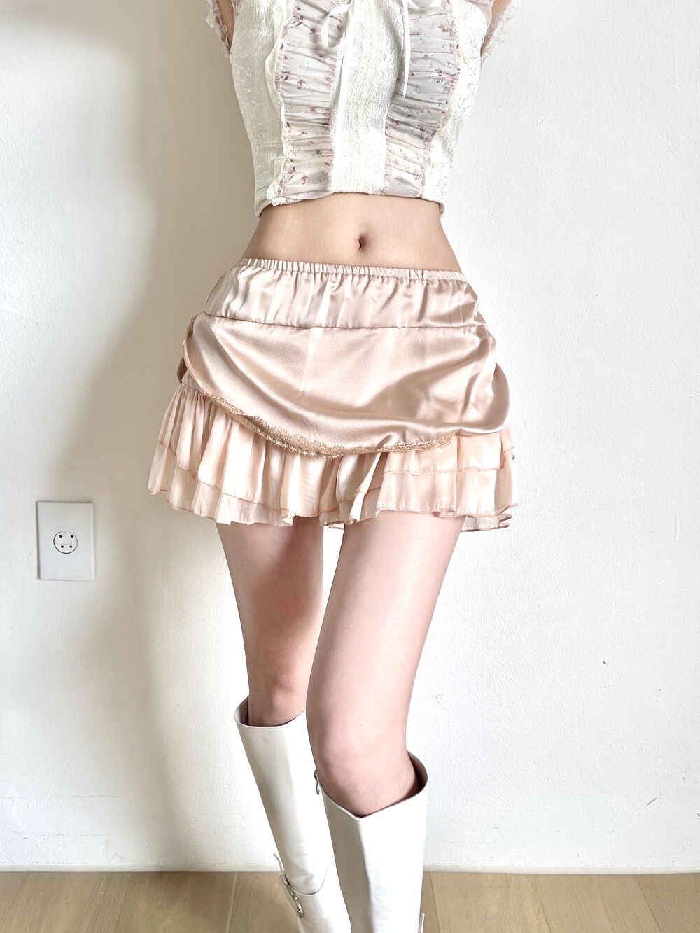 새틴 레이스 레이어드 쉬폰 캉캉 미니 스커트
