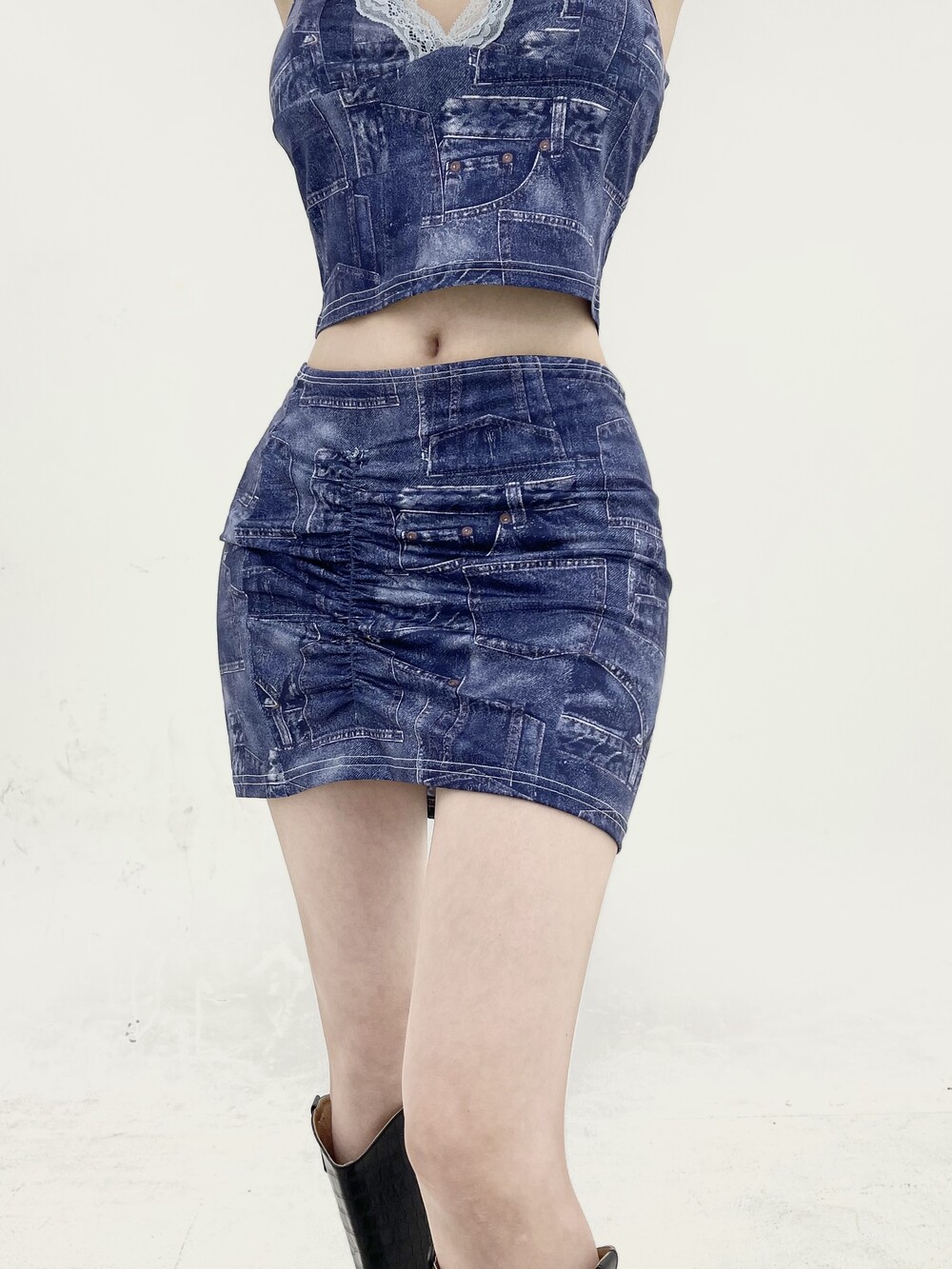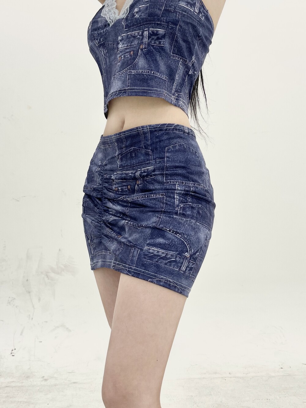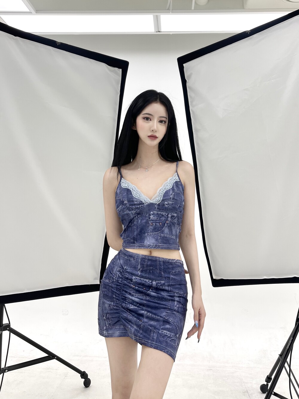 데님 포켓 프린팅 레이스 원피스 / 투피스
