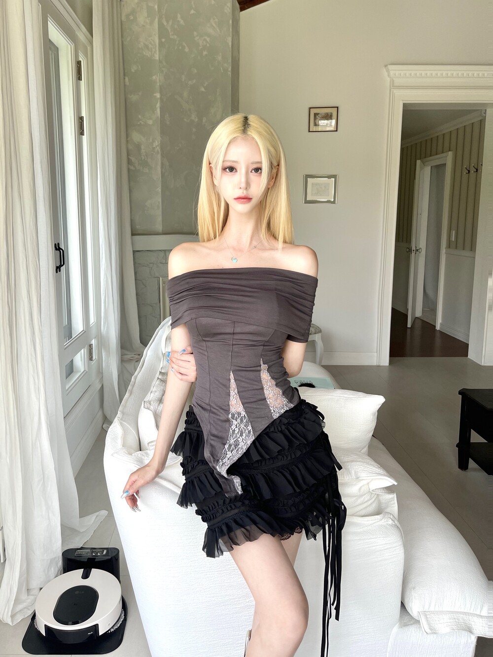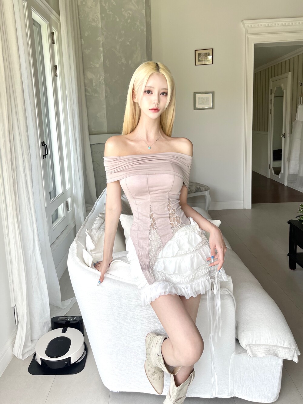사이드 리본을 묶어 홀 포인트 연출도 매력적인 상품
