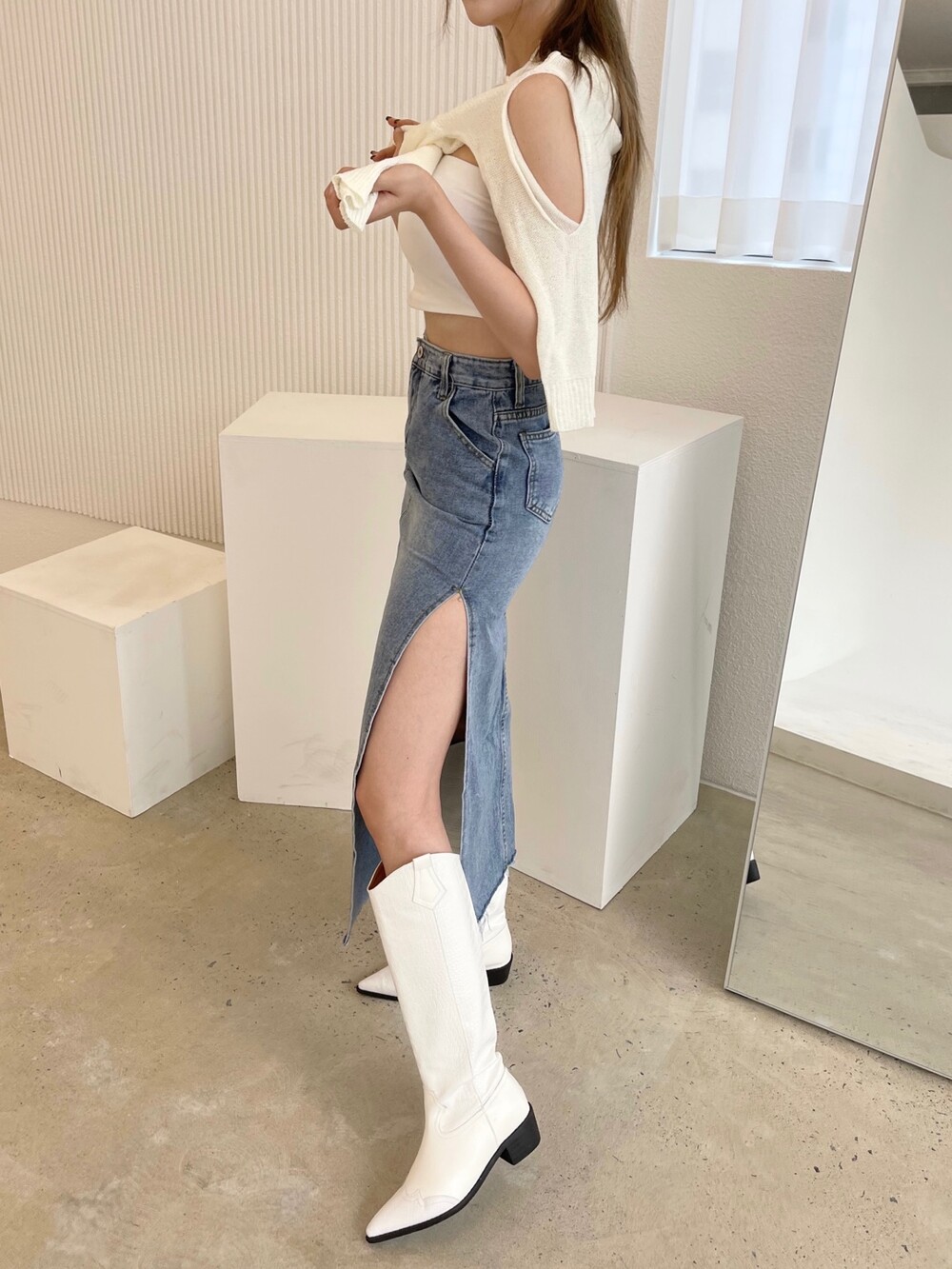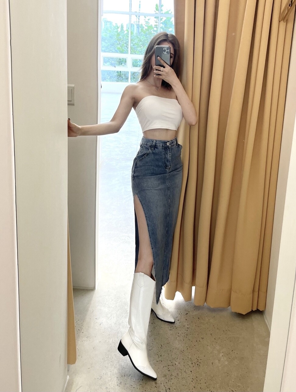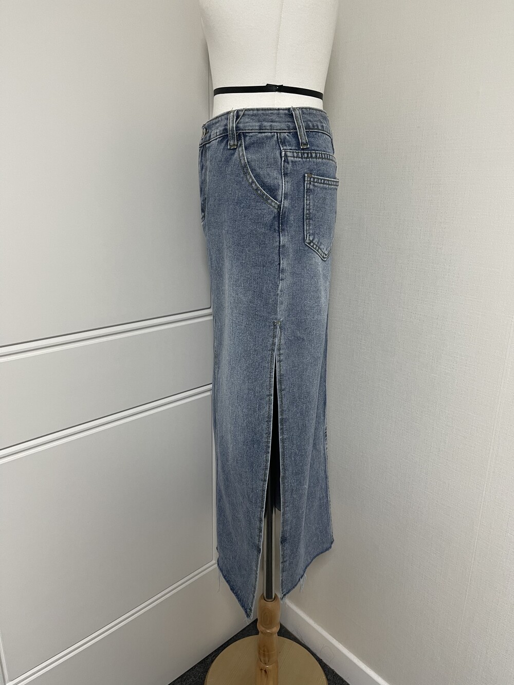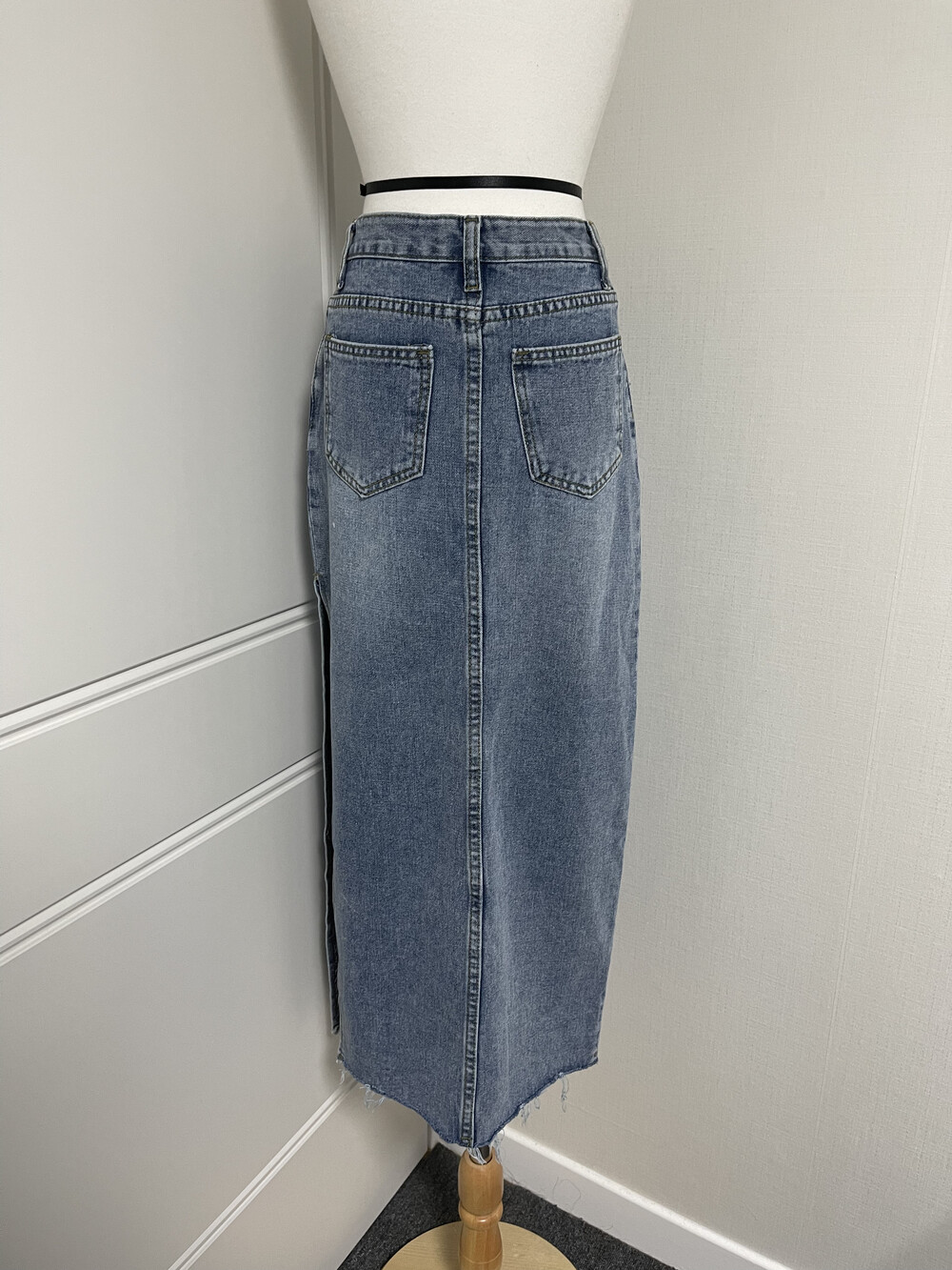 딥한 사이드 트임 포인트의 롱 데님 스커트