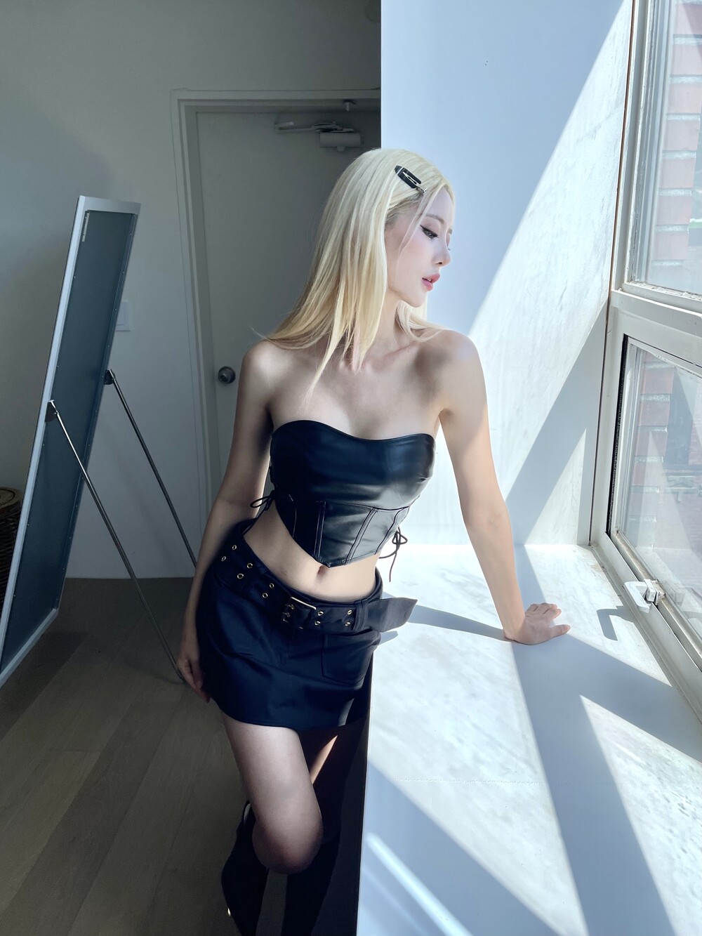 코르셋 디자인에 v크롭 라인으로 허리가 얇아보이는 핏감
