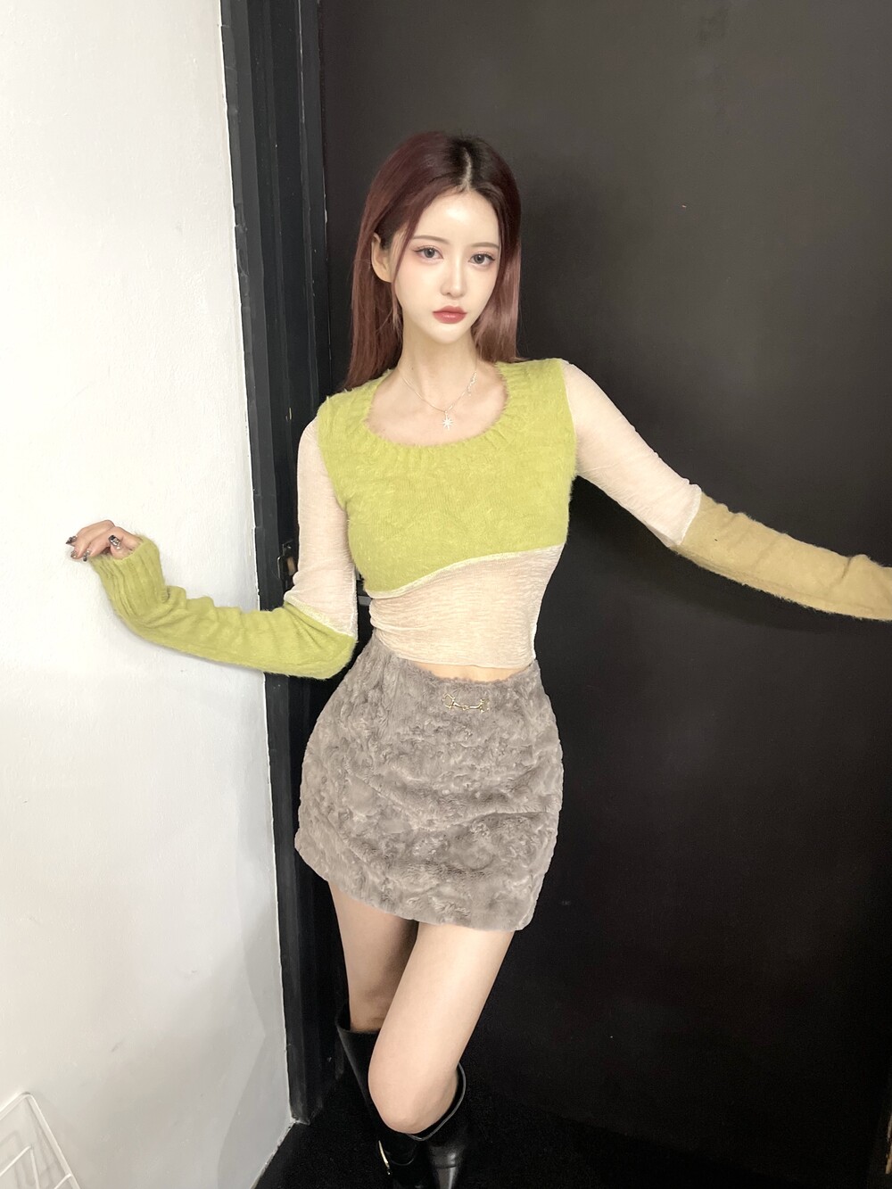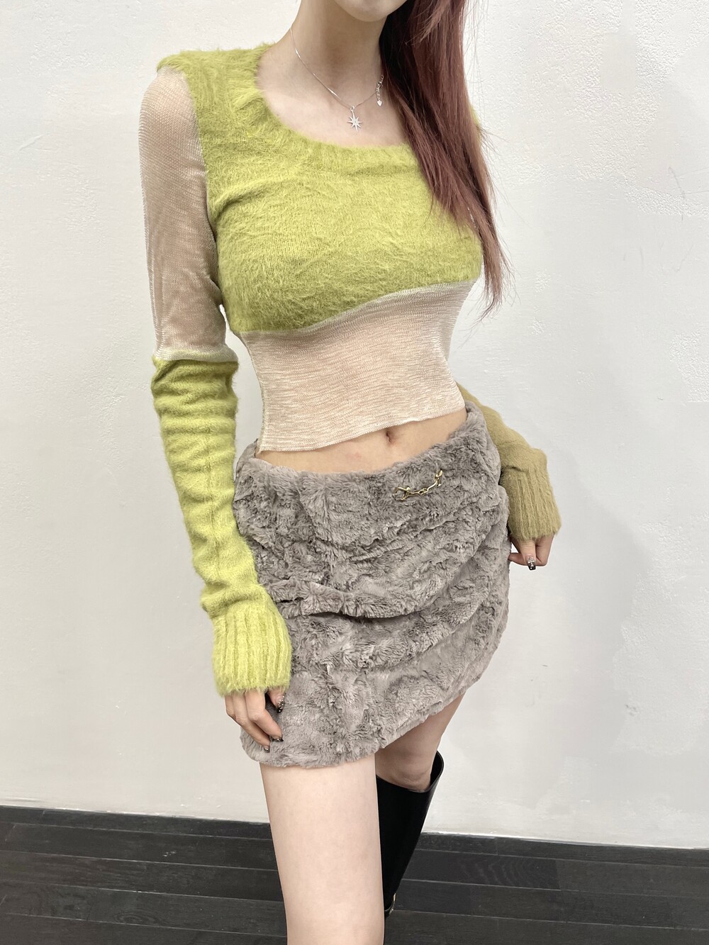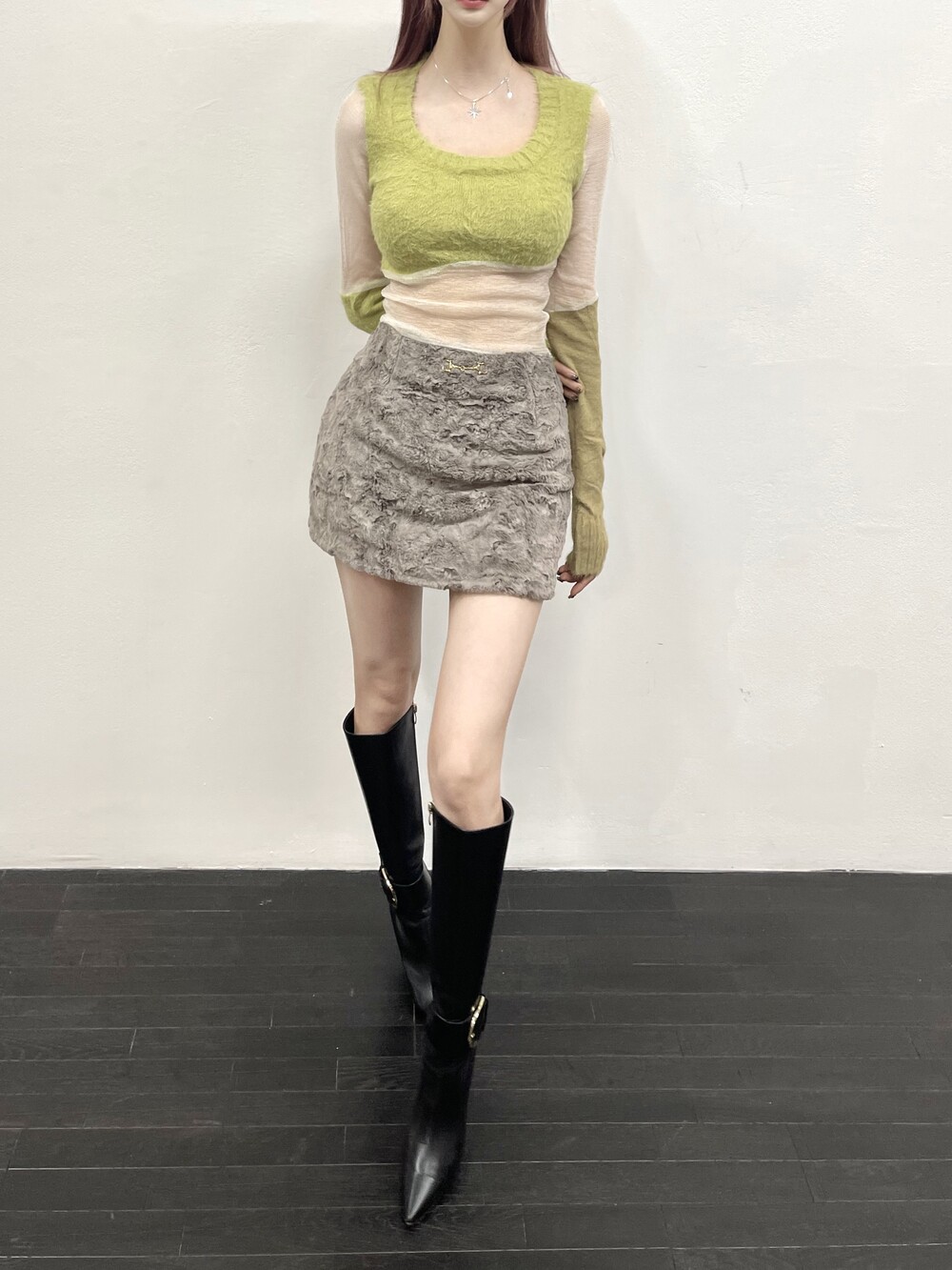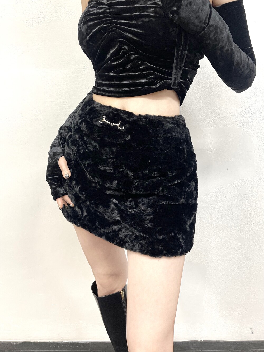 퍼 소재로 너무 고급스럽고 예쁜 세미 로우라이즈 퍼 스커트