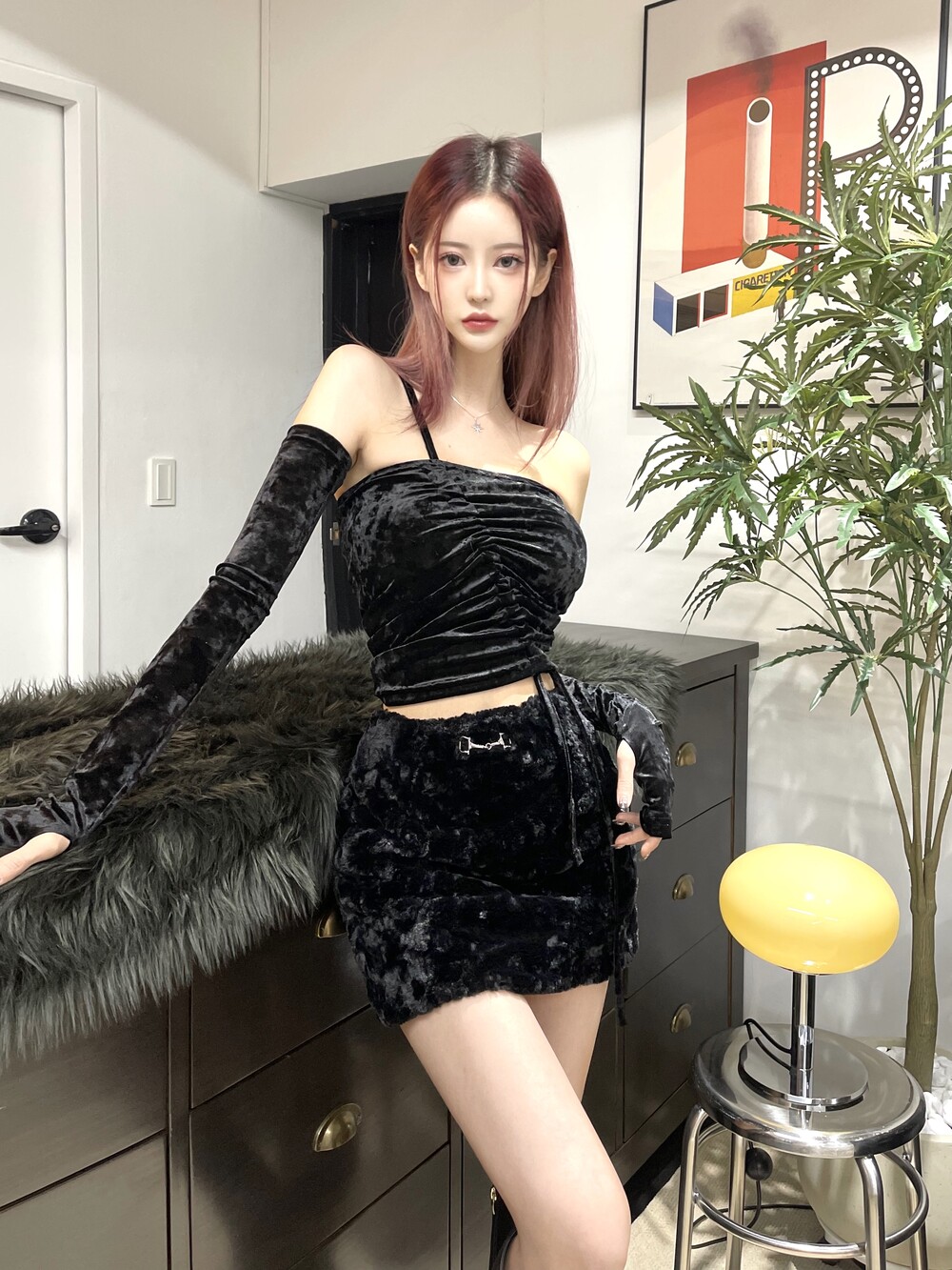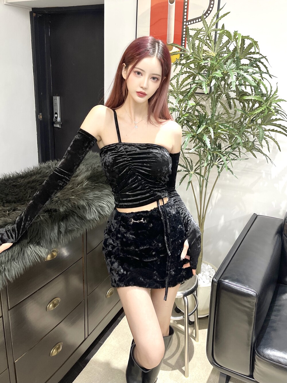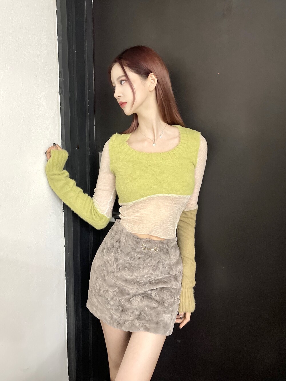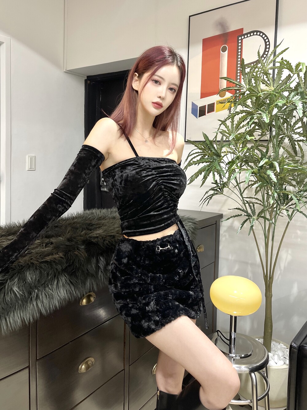 퍼 소재로 너무 고급스럽고 예쁜 세미 로우라이즈 퍼 스커트