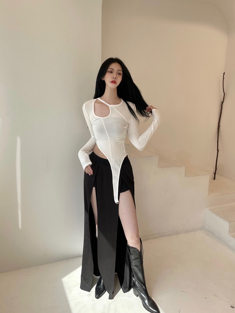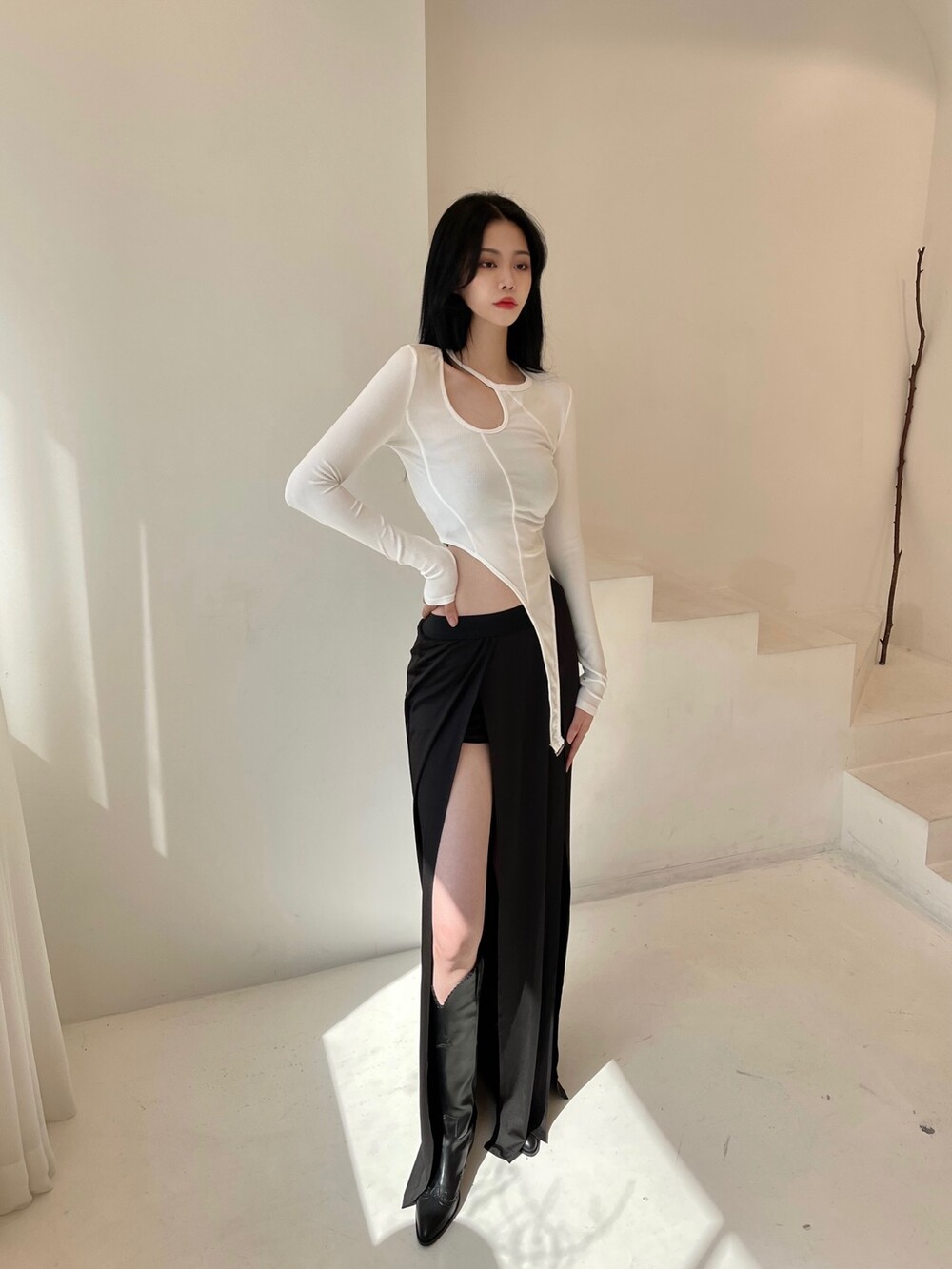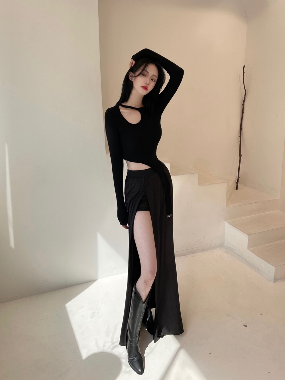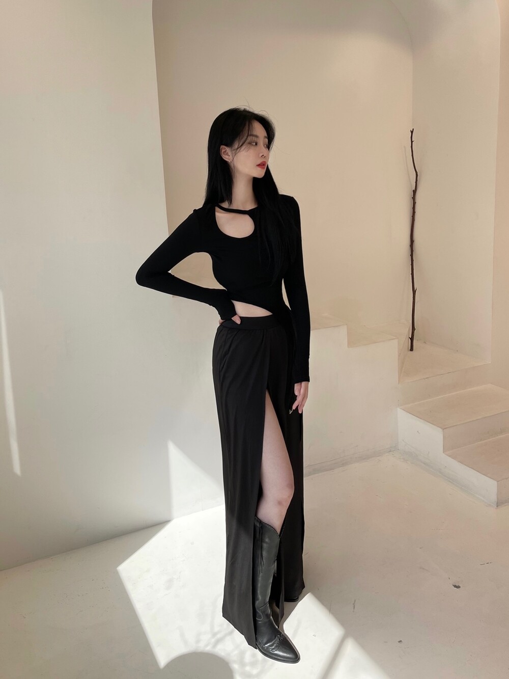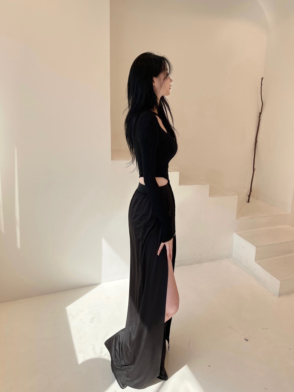 맥시하면서 딥하게 트여있는 디테일이 멋스러운 아이템
