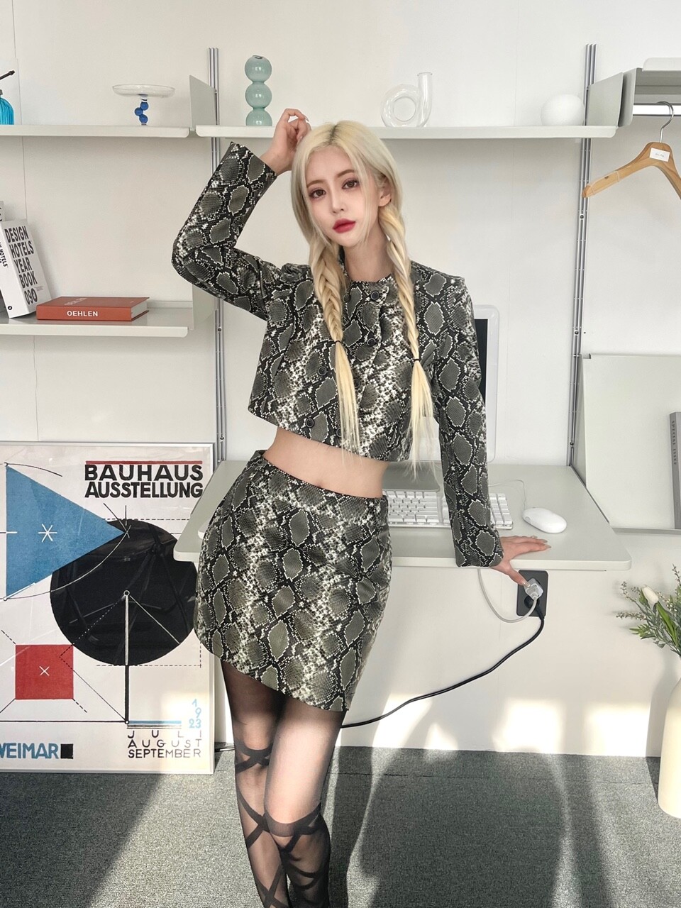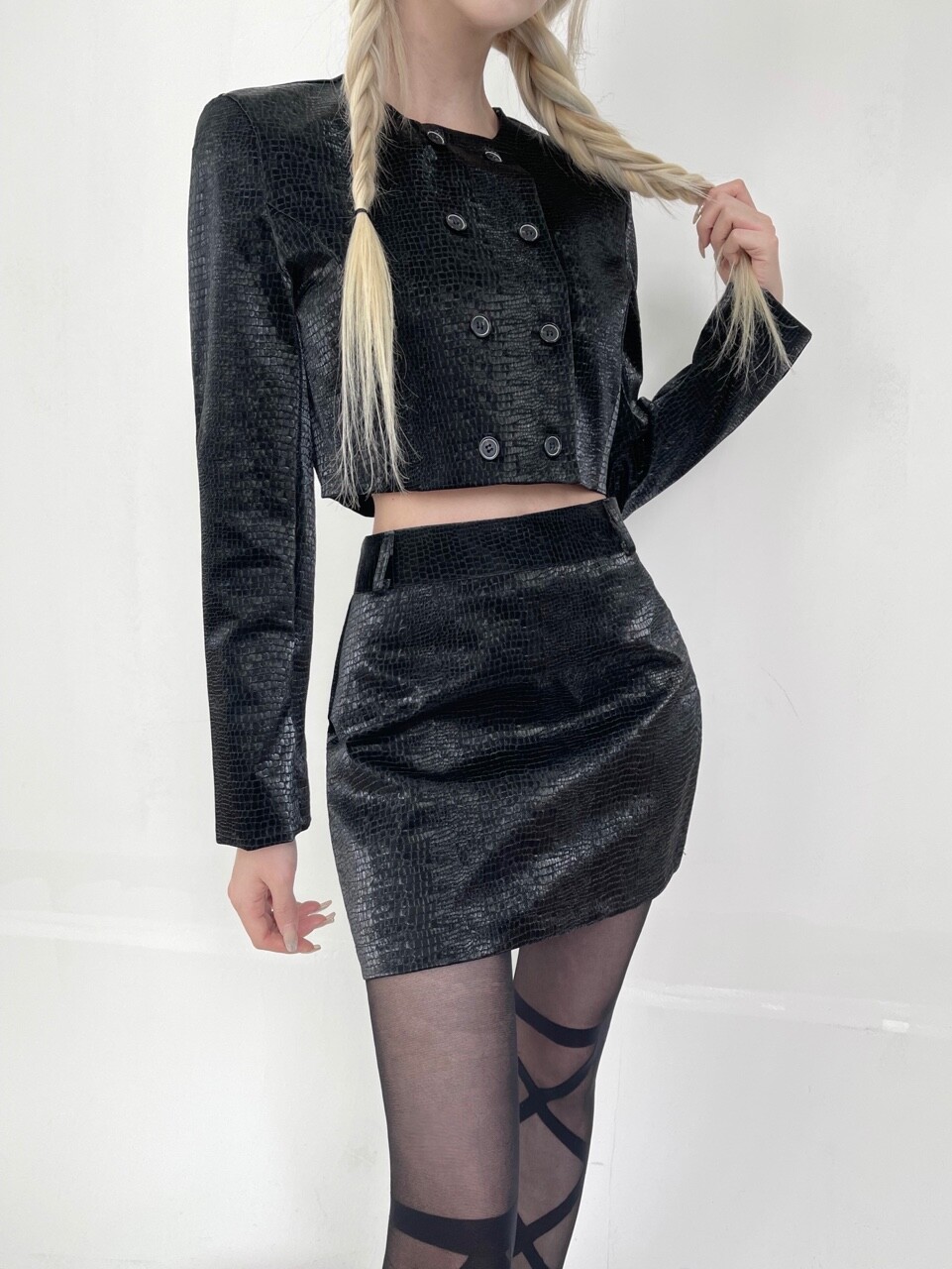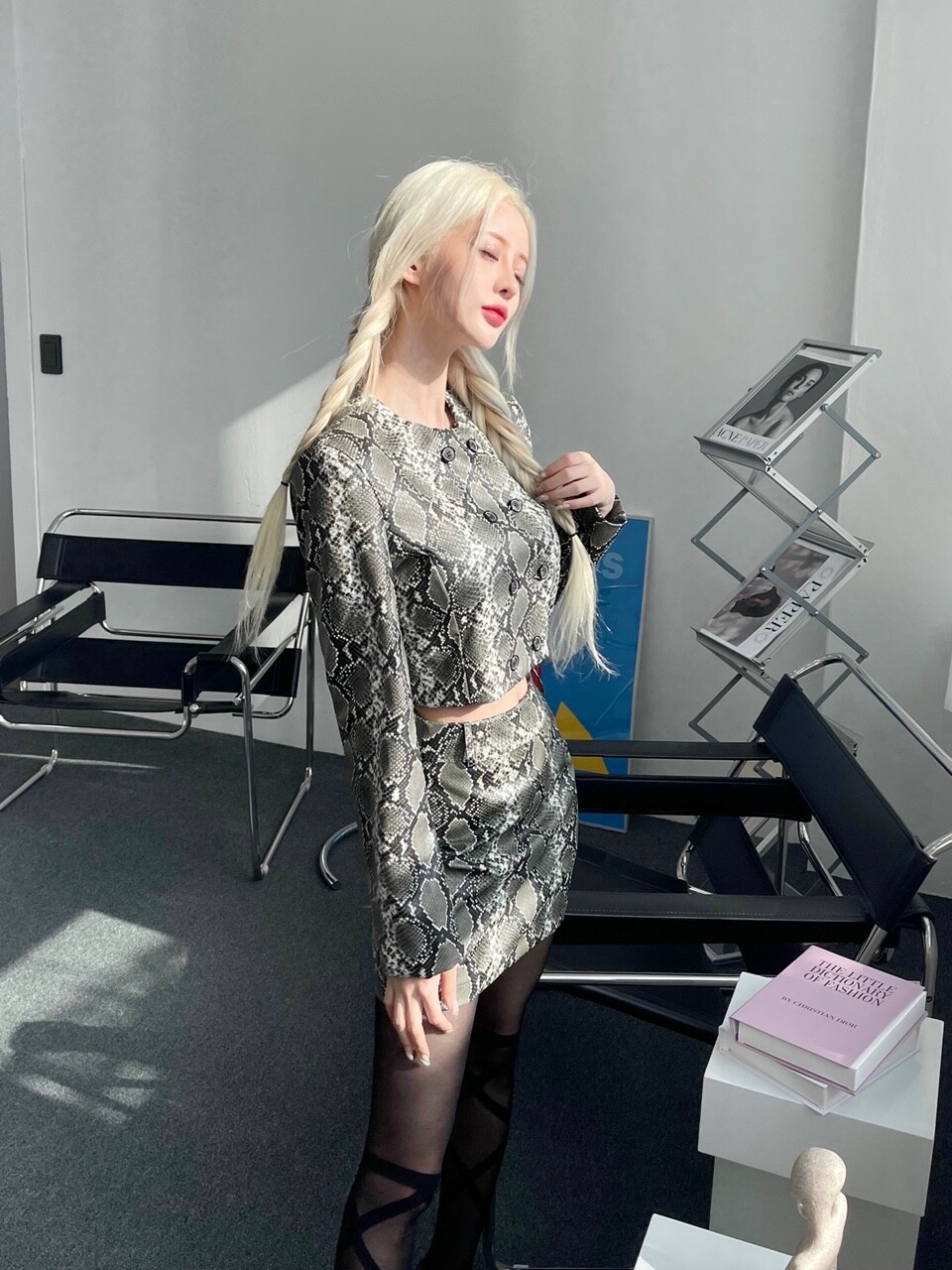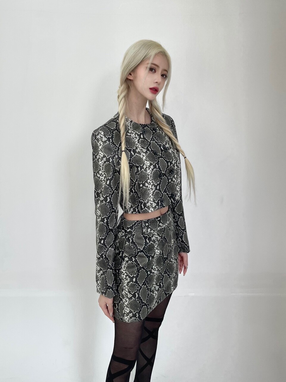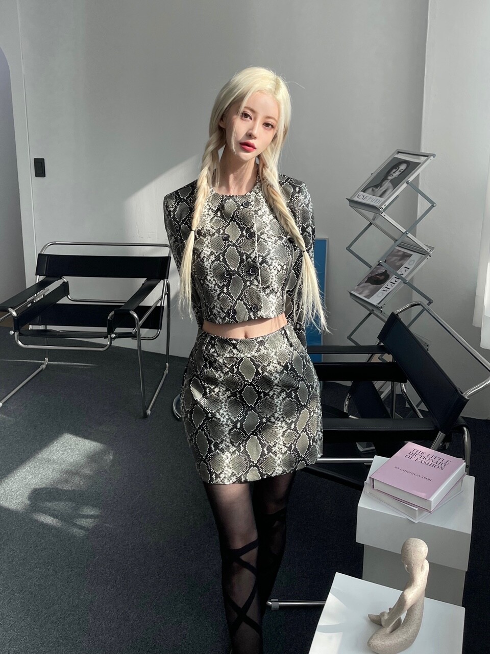 유니크한 텍스쳐의 파이톤 레더 투피스 미니스커트