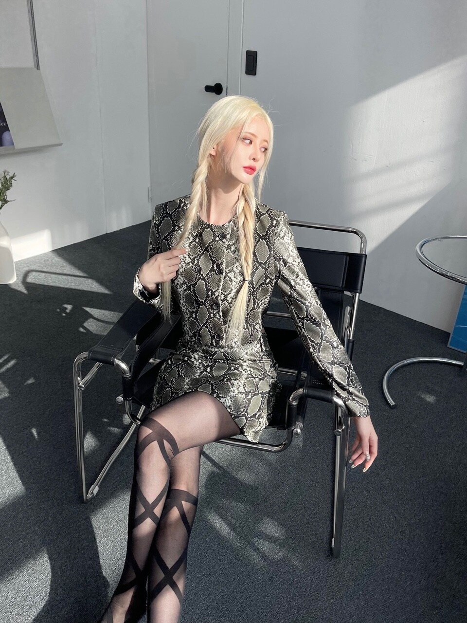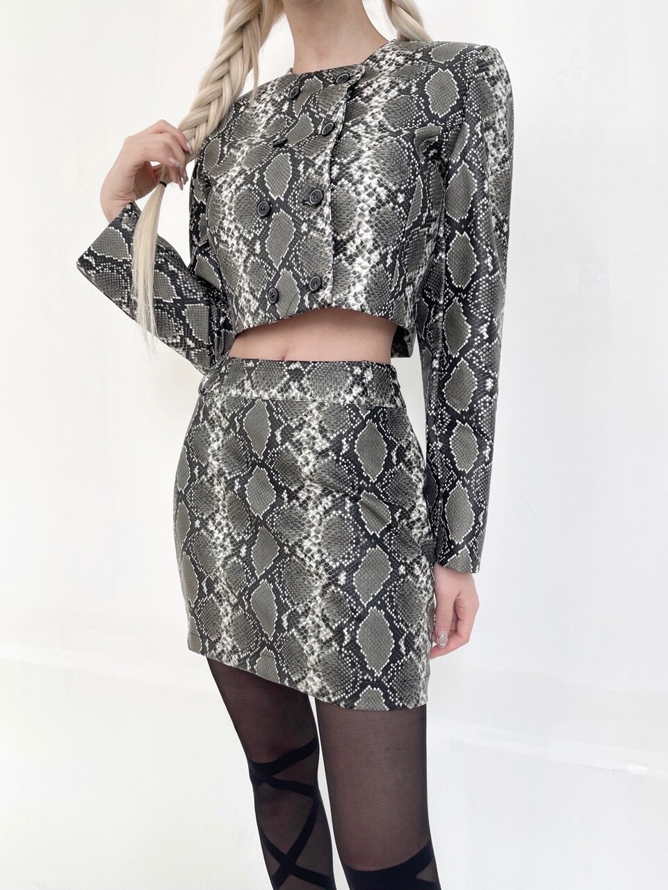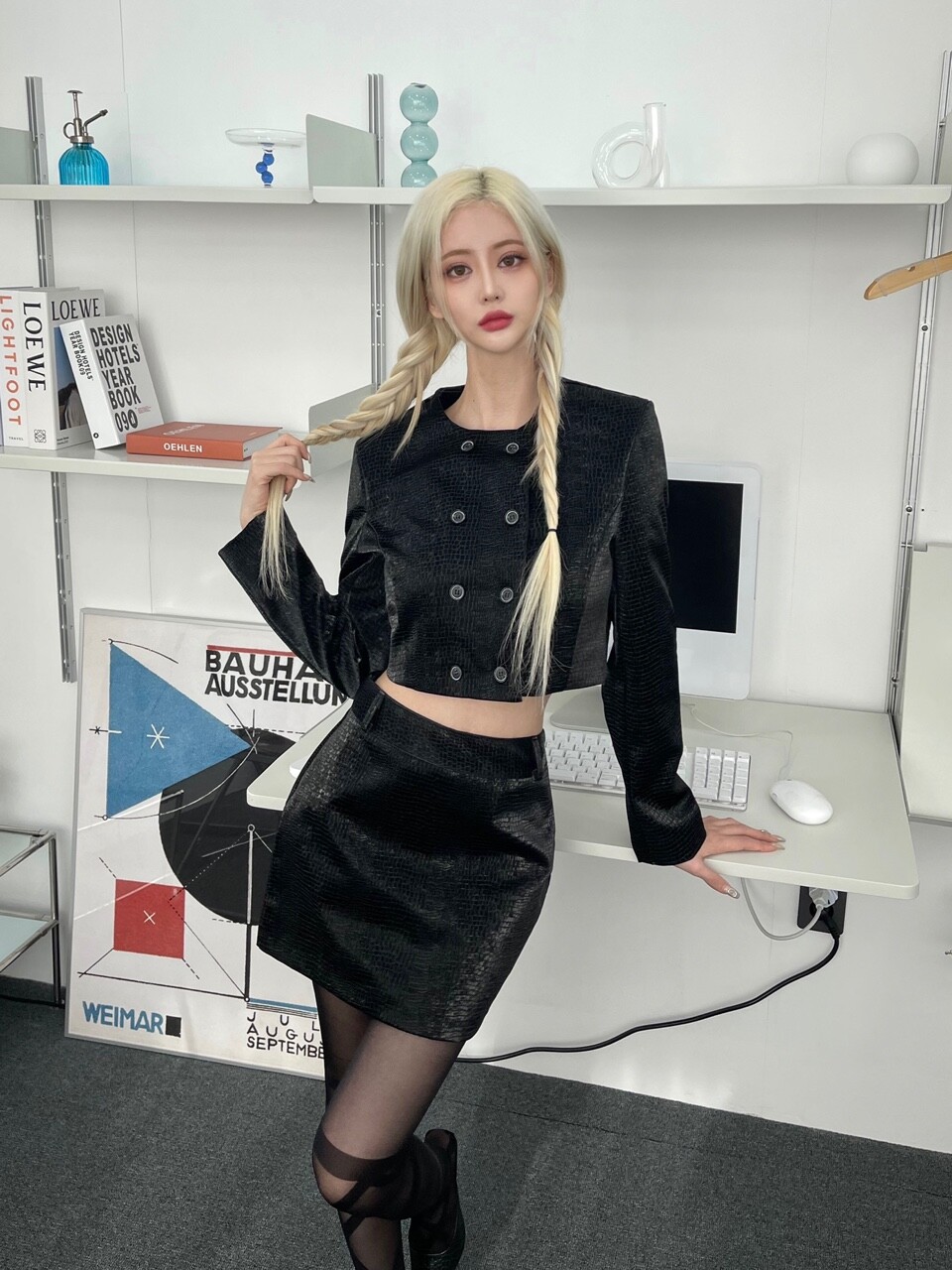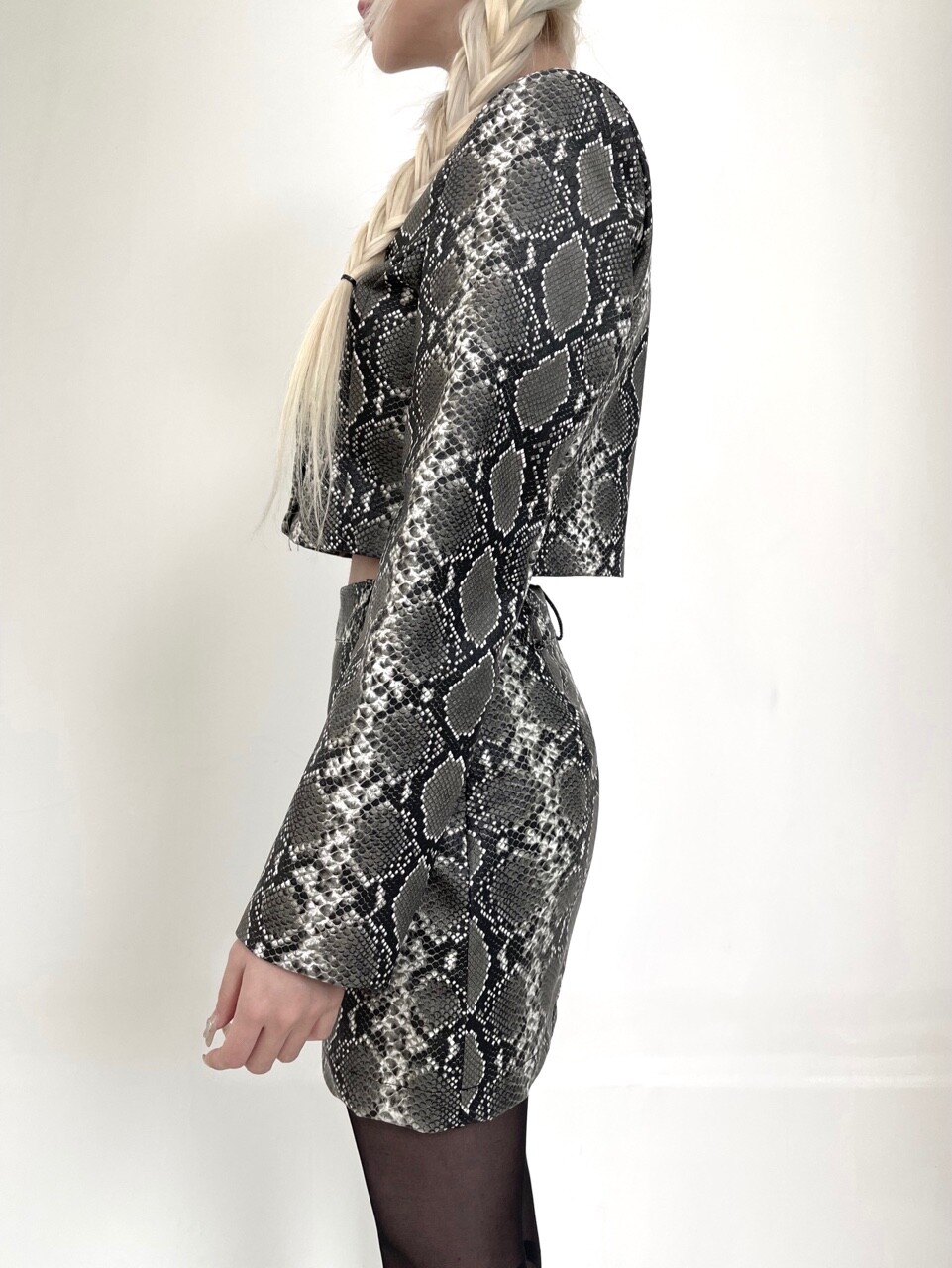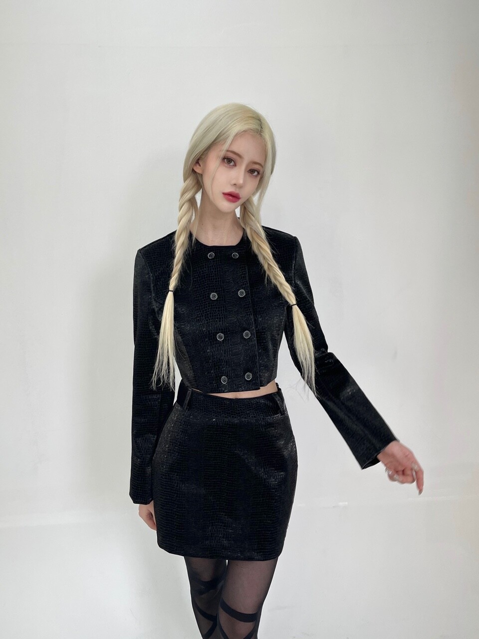 유니크한 텍스쳐의 파이톤 레더 투피스 미니스커트