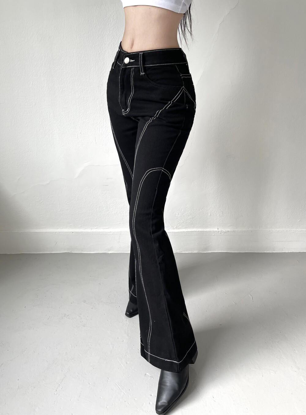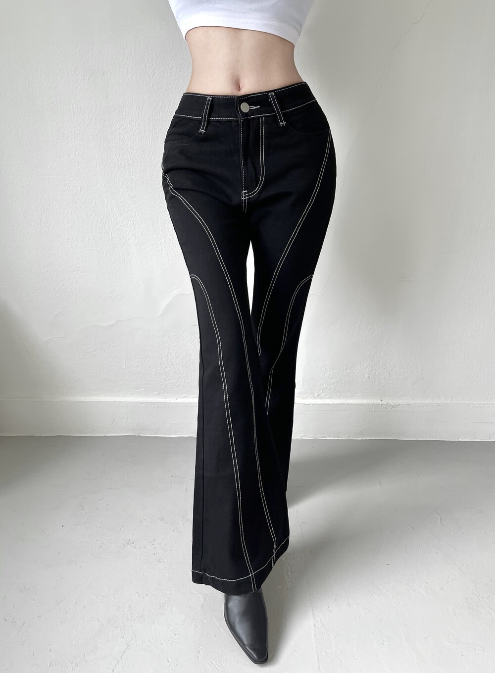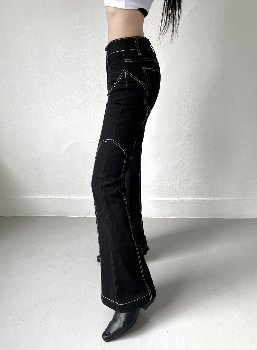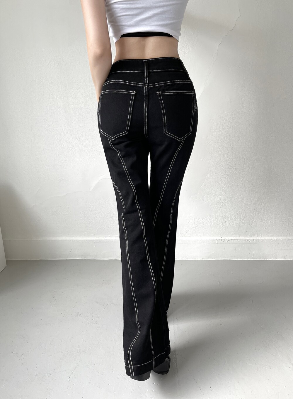 시크한 블랙 컬러에 화이트 배색 스티치 라인이 매력적인 팬츠