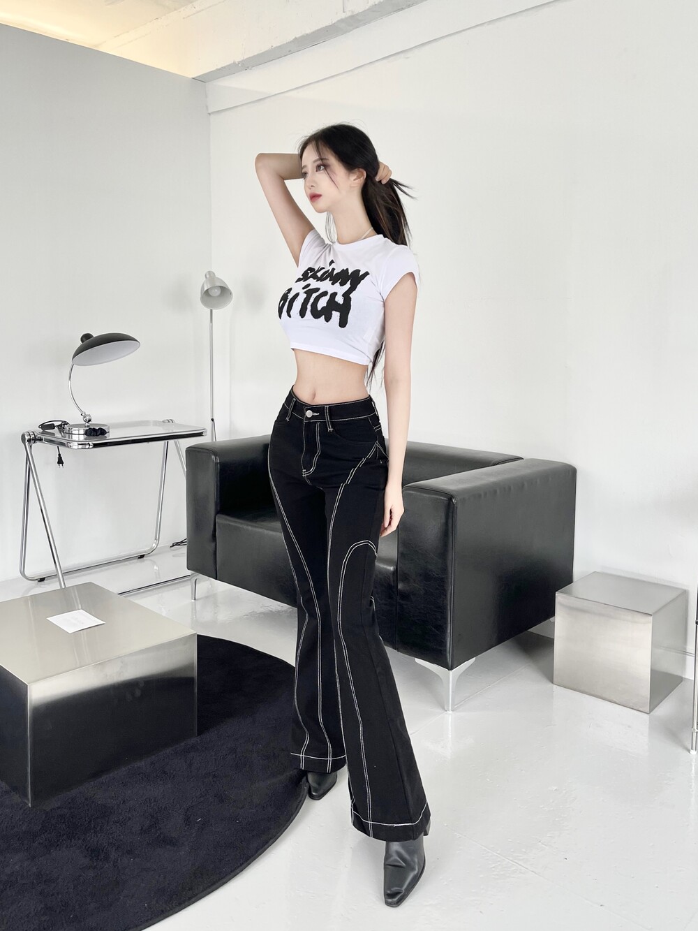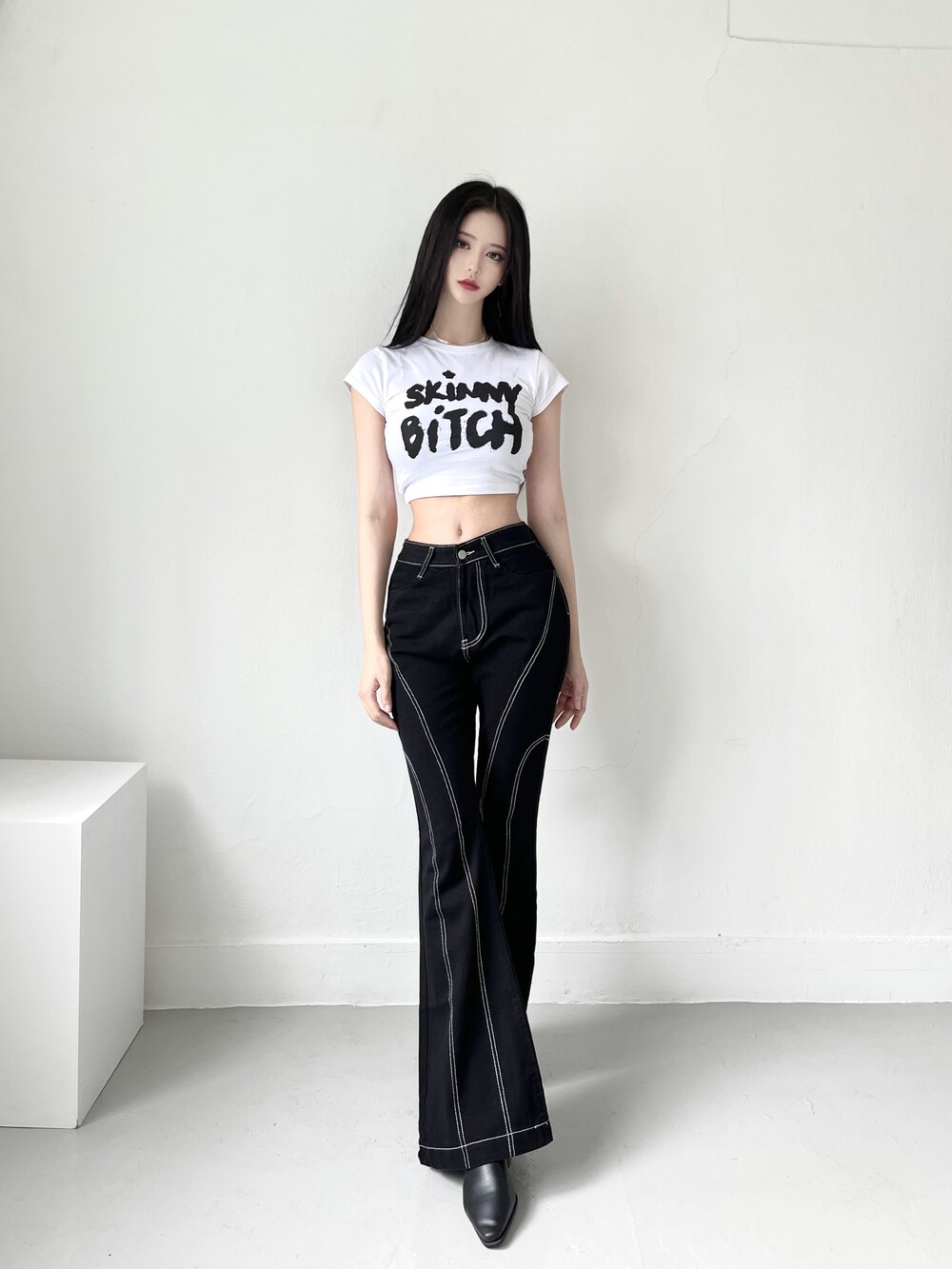 배꼽 바로 밑까지 올라오는 라인으로 다리가 길어보이는 팬츠