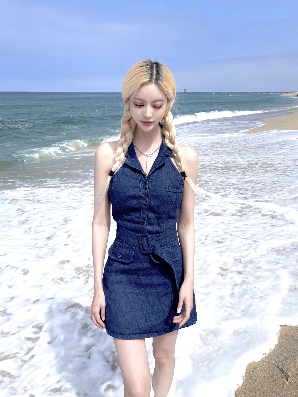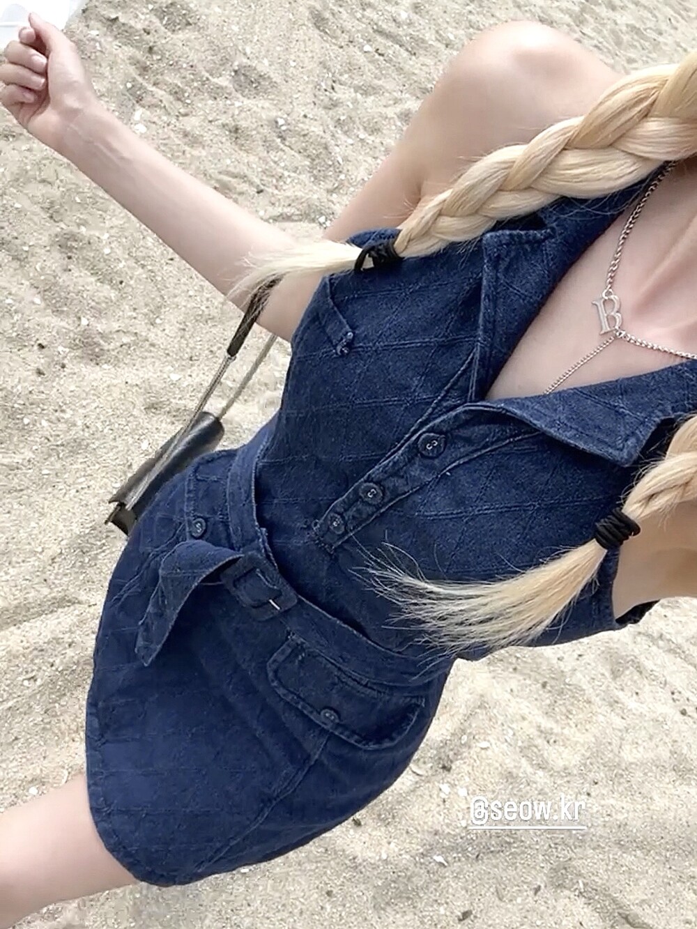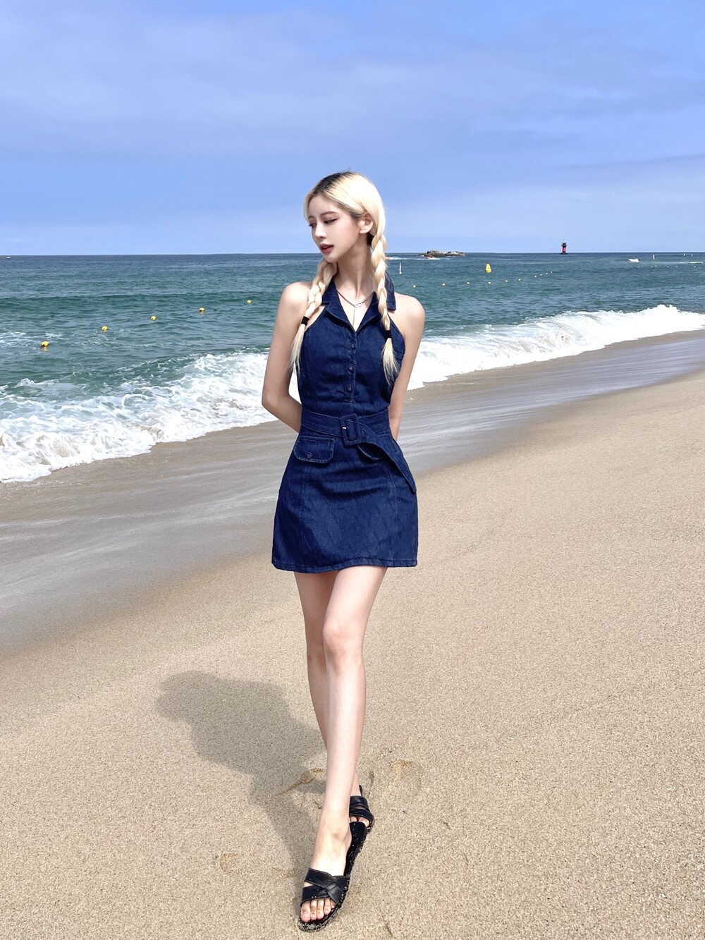 다이아패턴 데님 홀터 미니 원피스 (벨트세트)
