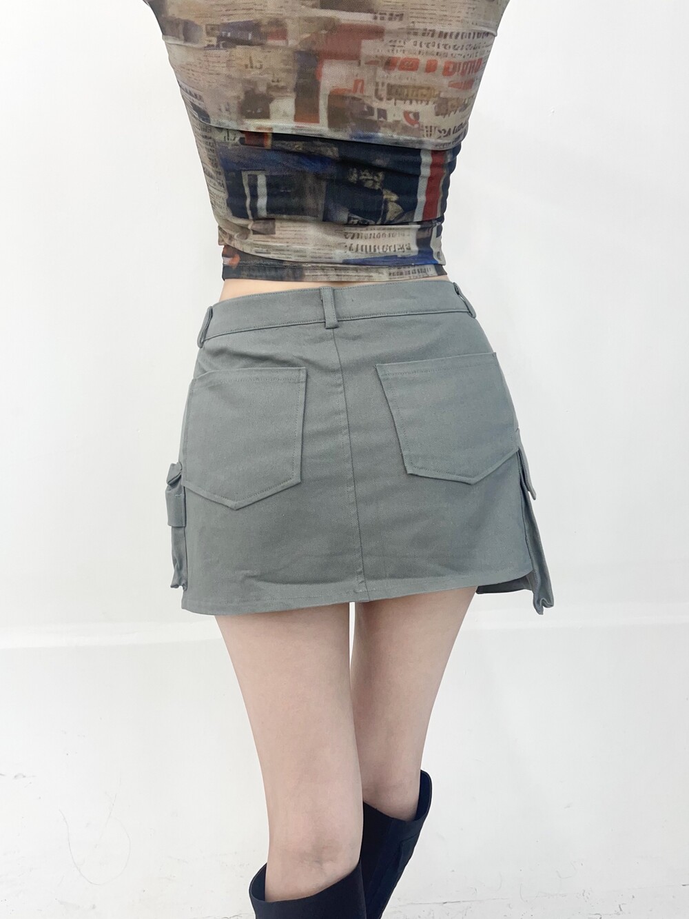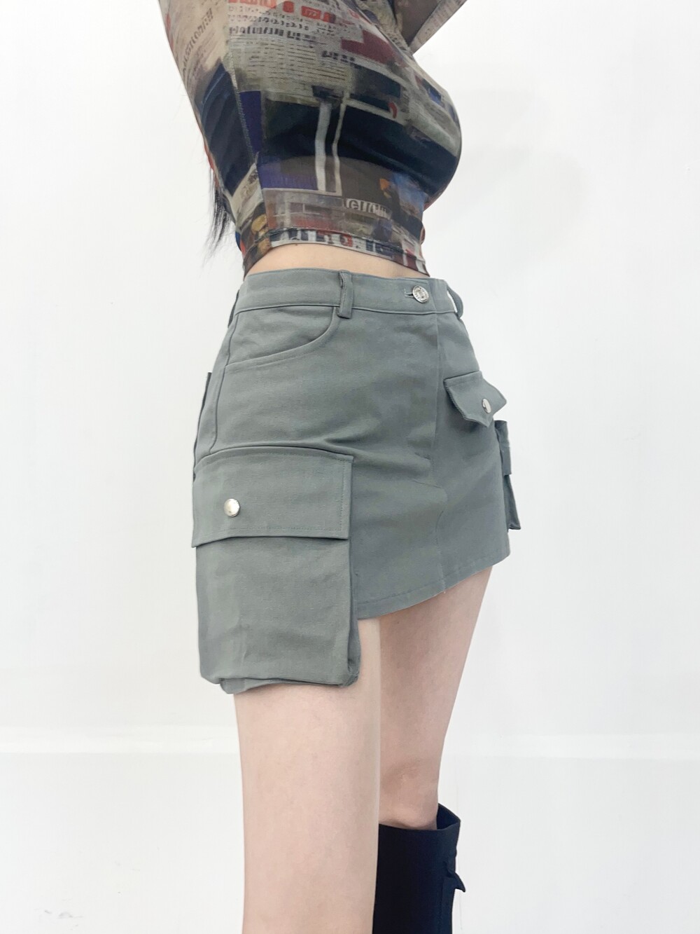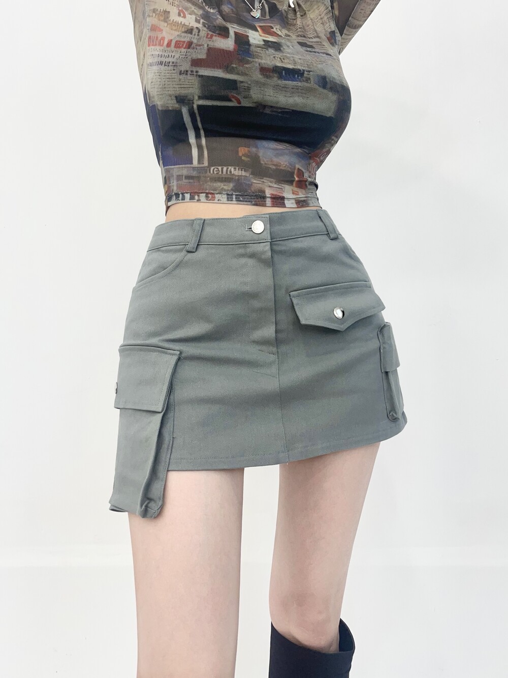 멀티 언발란스 포켓 카고 미니 스커트