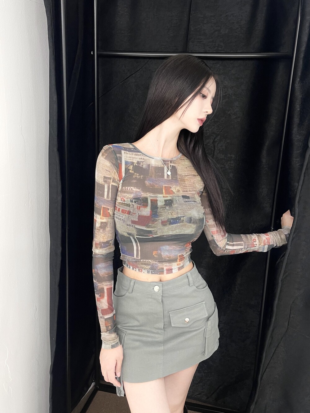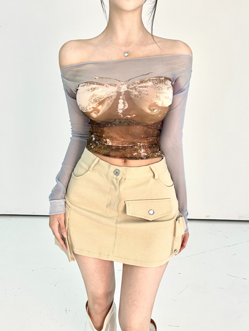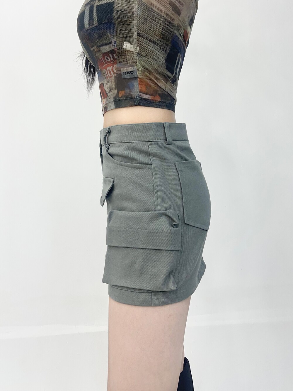 멀티 언발란스 포켓 카고 미니 스커트