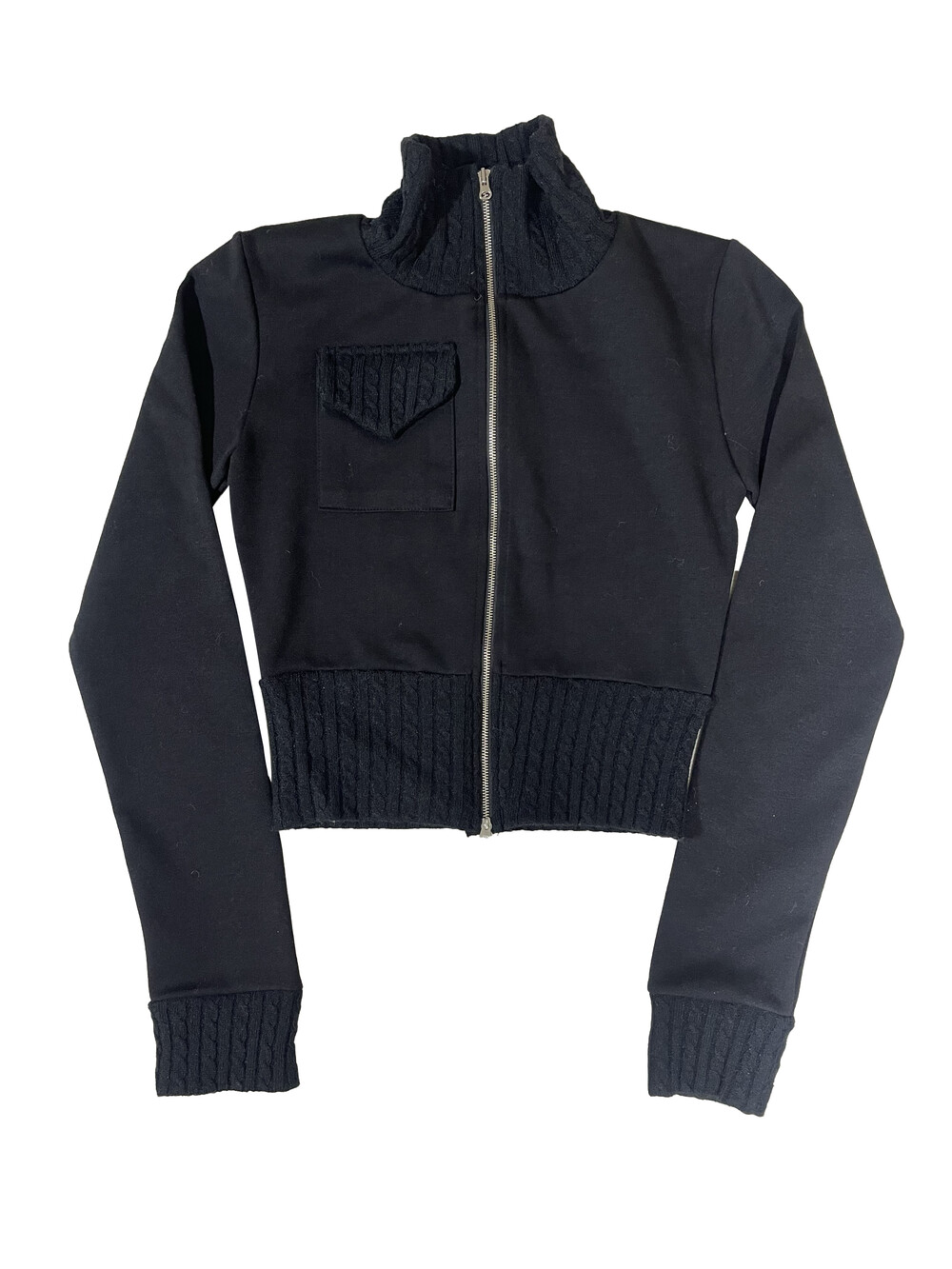 케이블 니트 조직감의 패브릭이 플랩 되어
