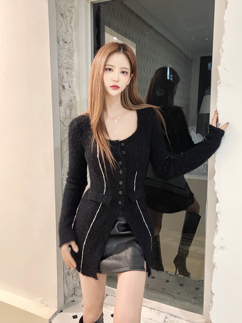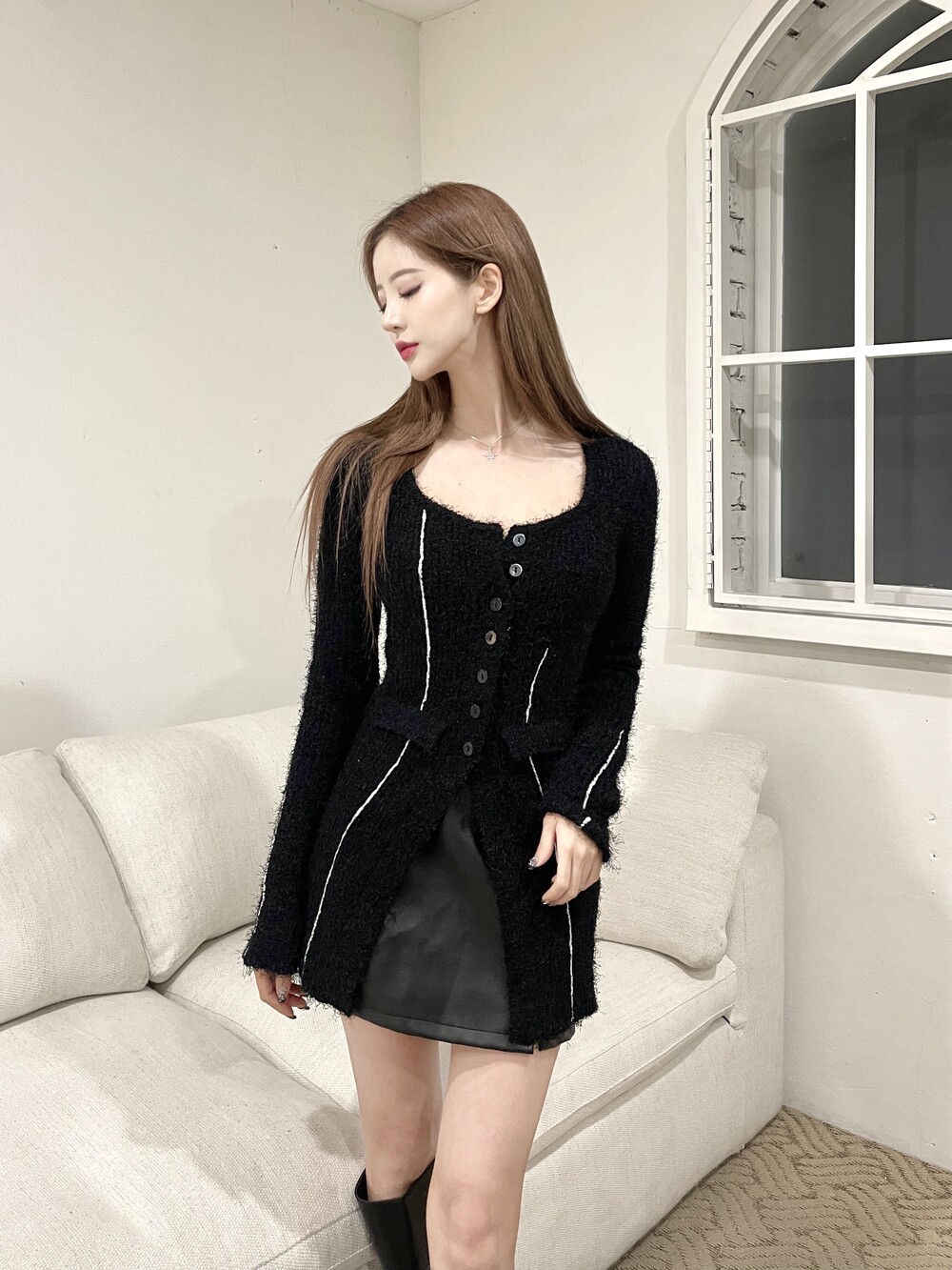 위 단추를 몇개 풀어 연출했을 때 더 예쁜 상품