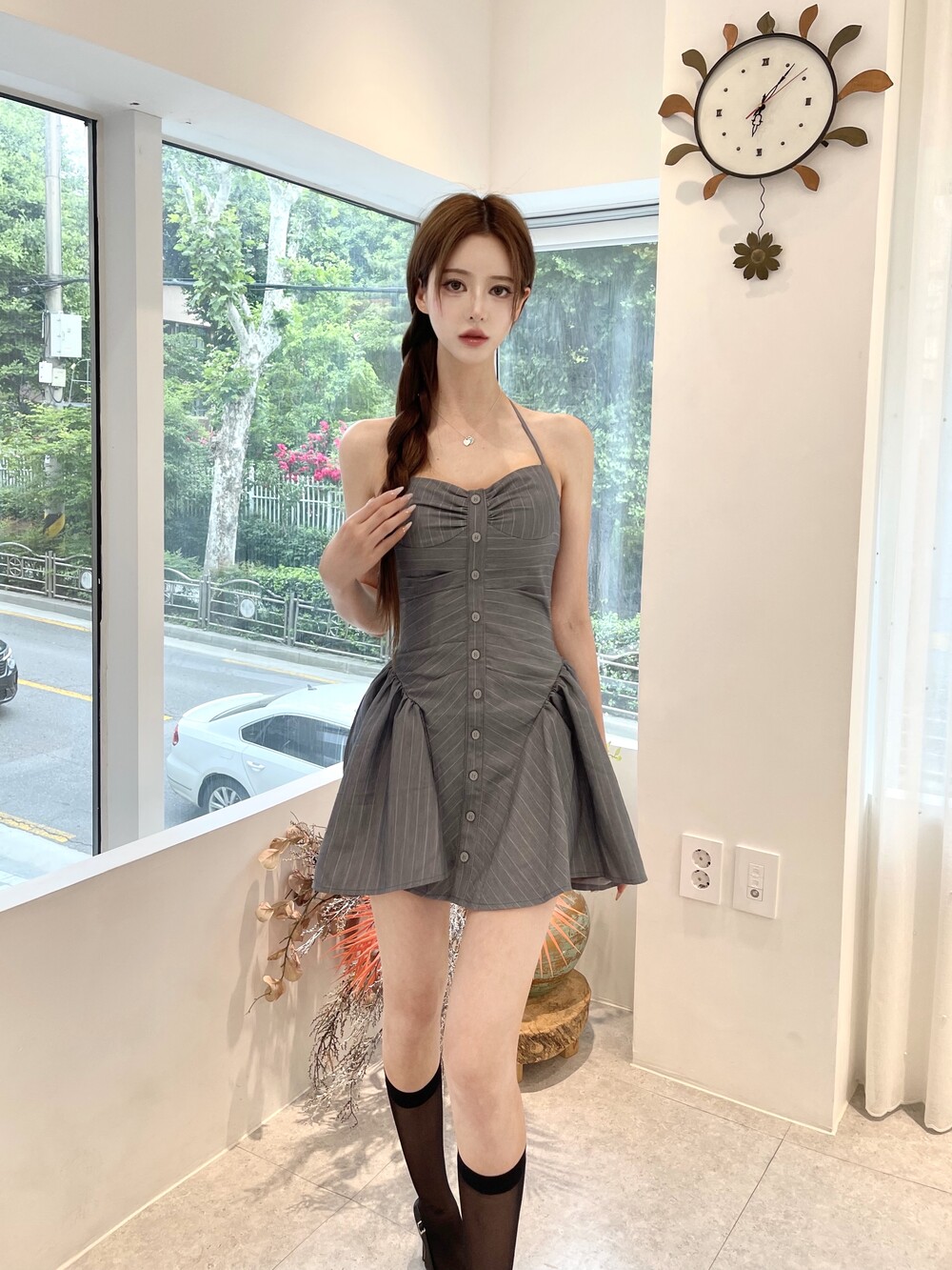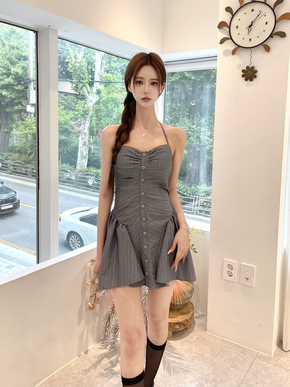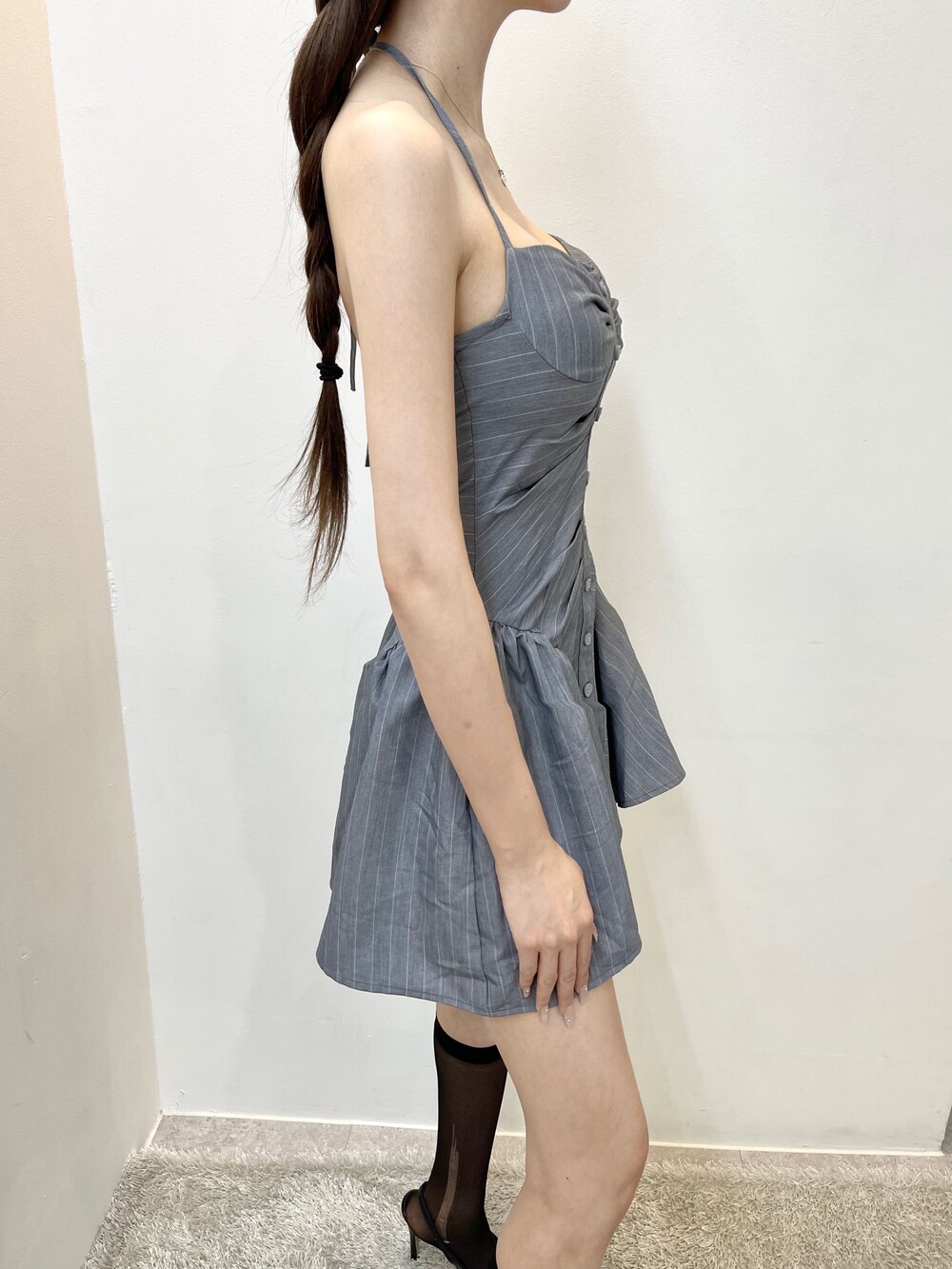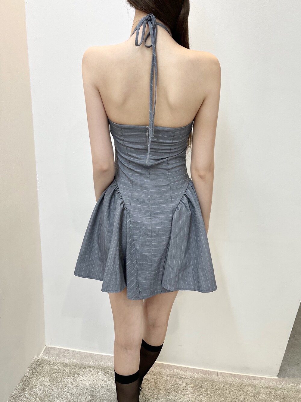 1507. 그레이 스트라이프 홀터 셔링 원피스