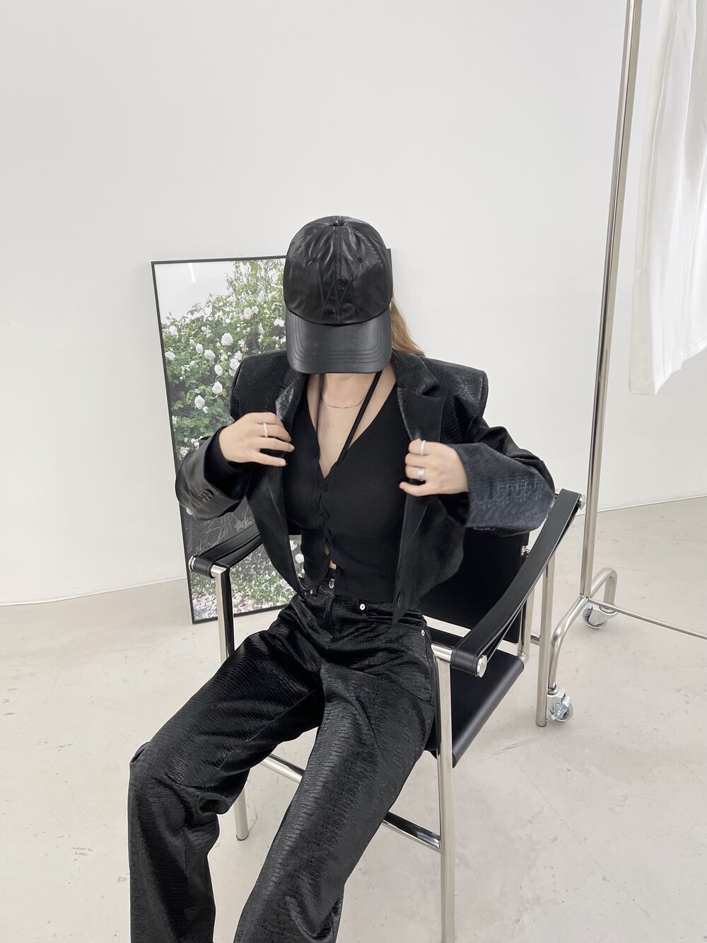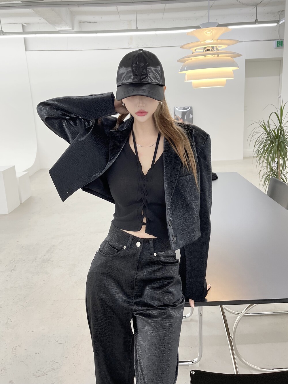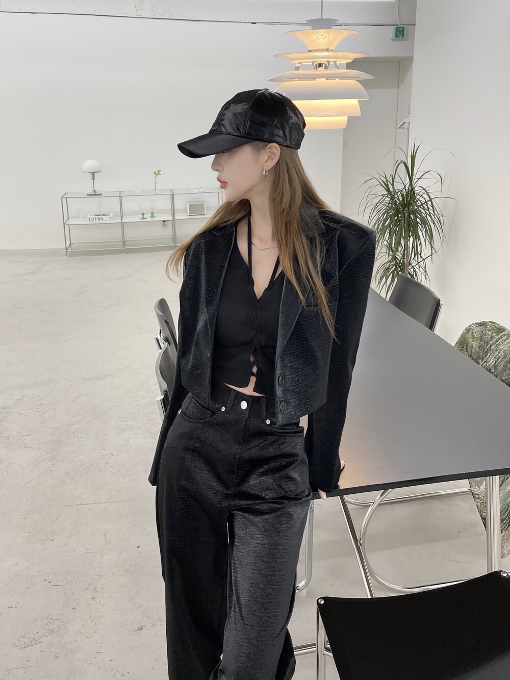 바스트 페이크 포켓으로 안정감있는 핏& 크롭핏으로 전체적인 실루엣이 멋스러운 아이템