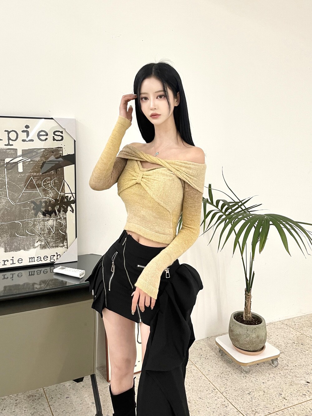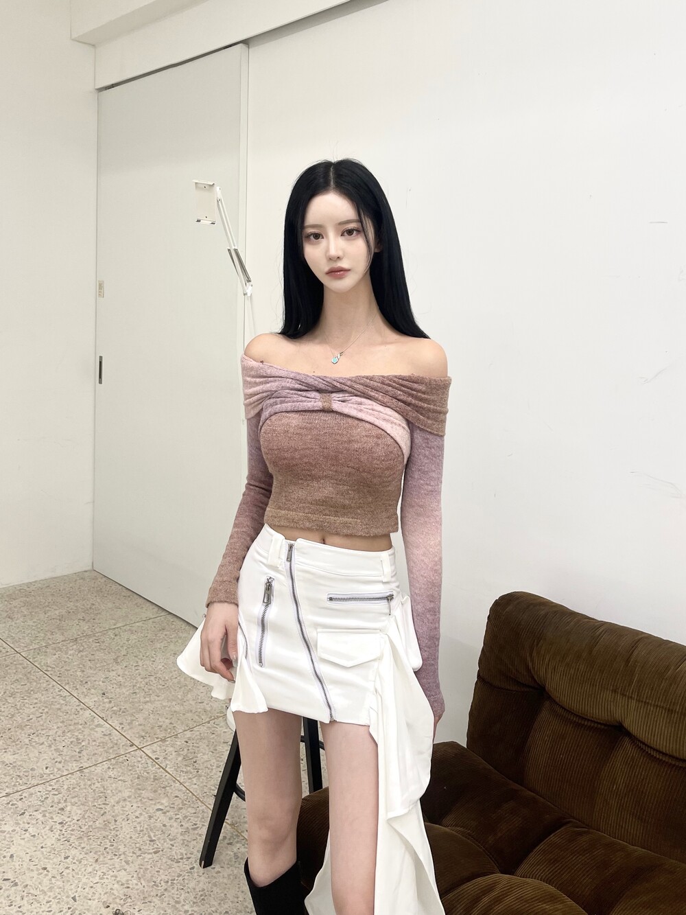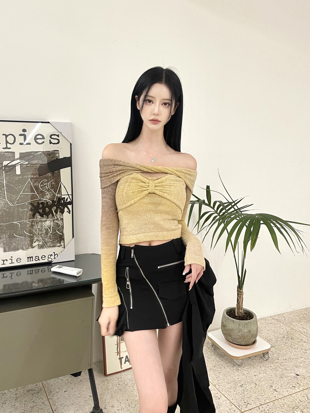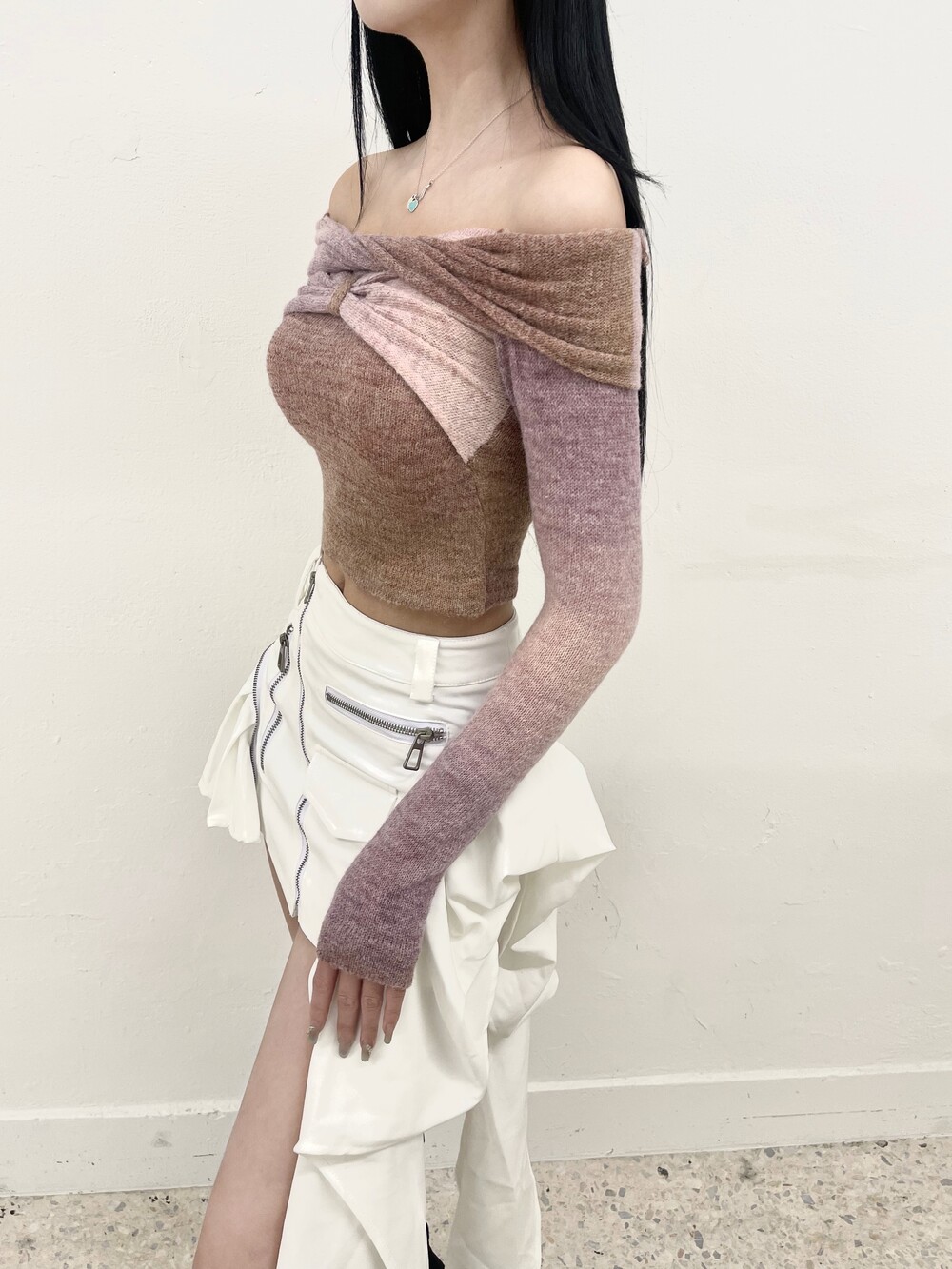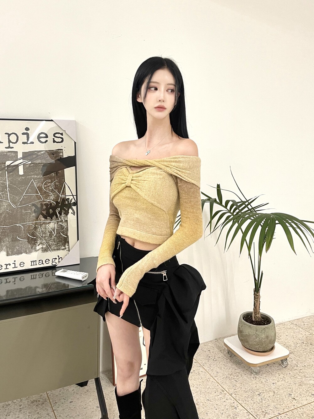 1435. 그라데이션 리본 오프숄더 니트 (2color)