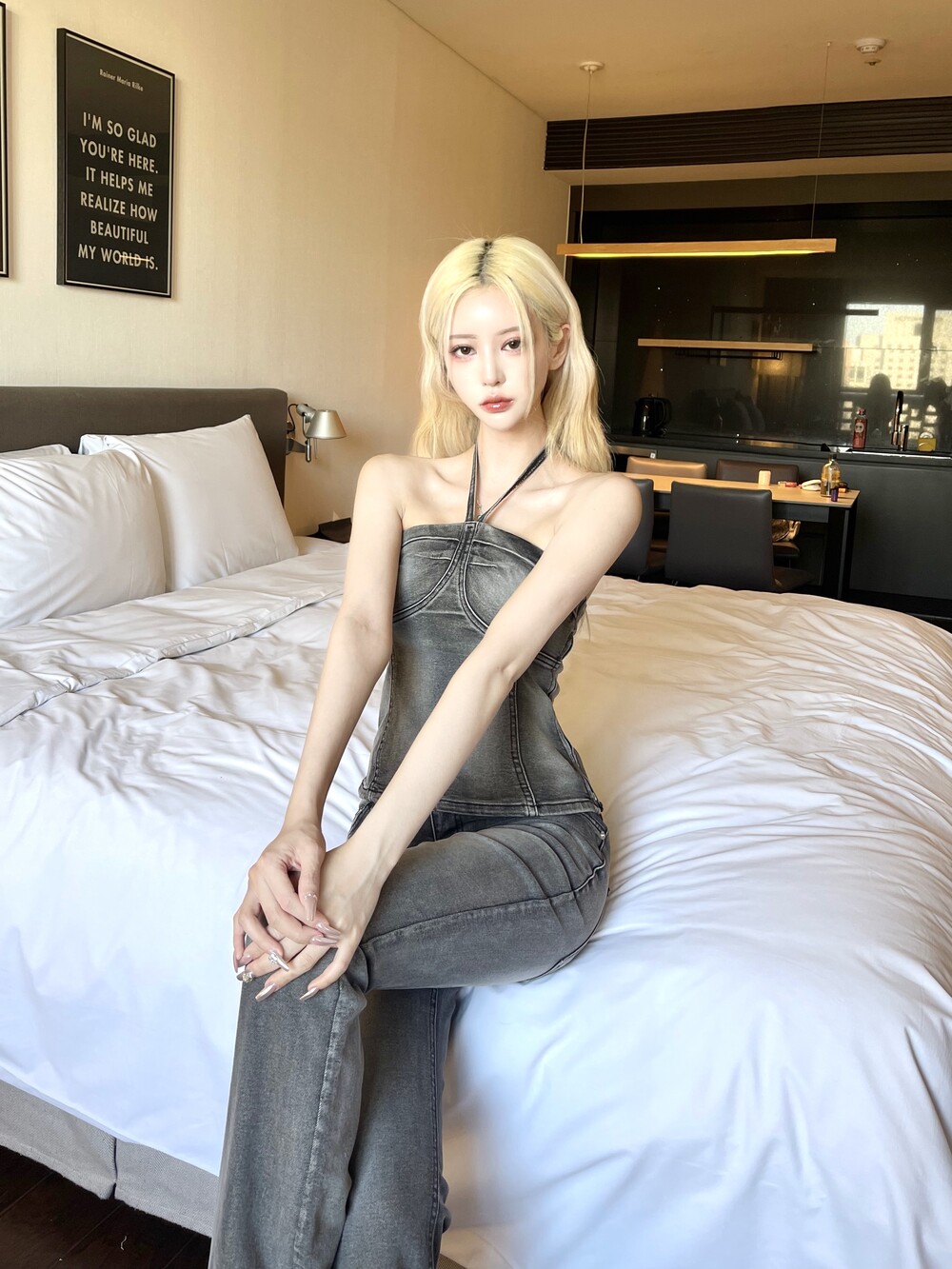 데님 절개 캐미솔 탑 라인