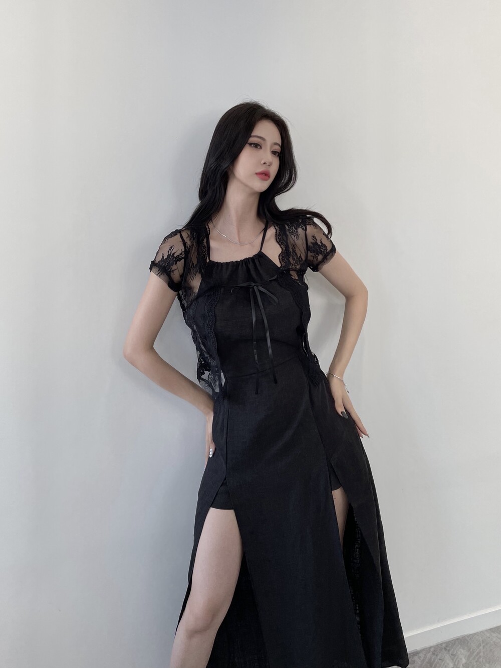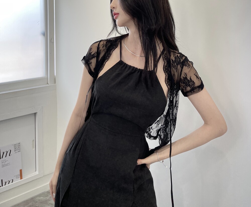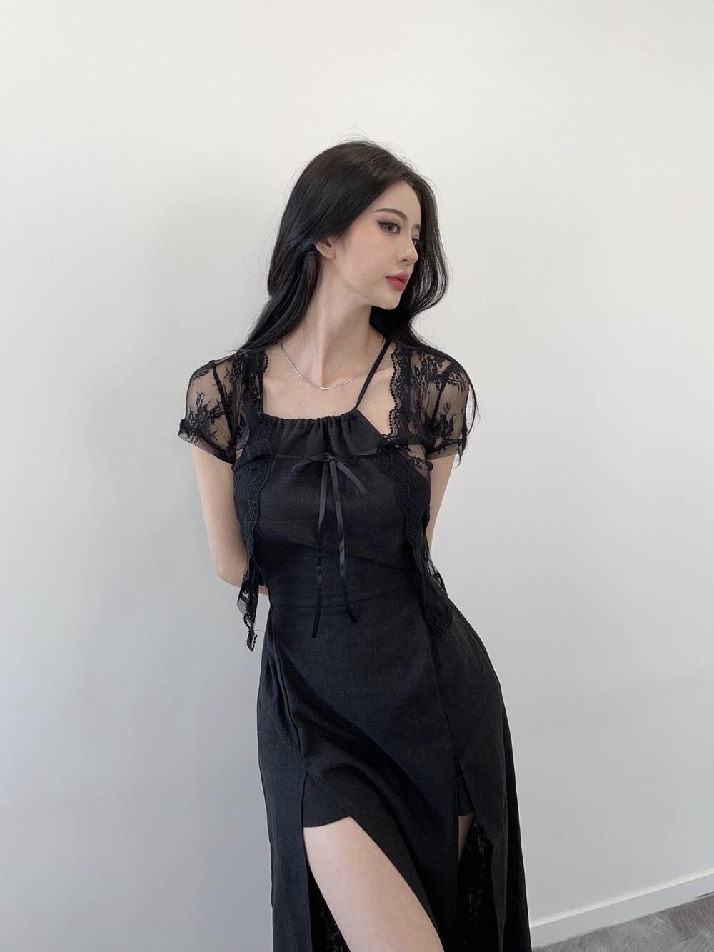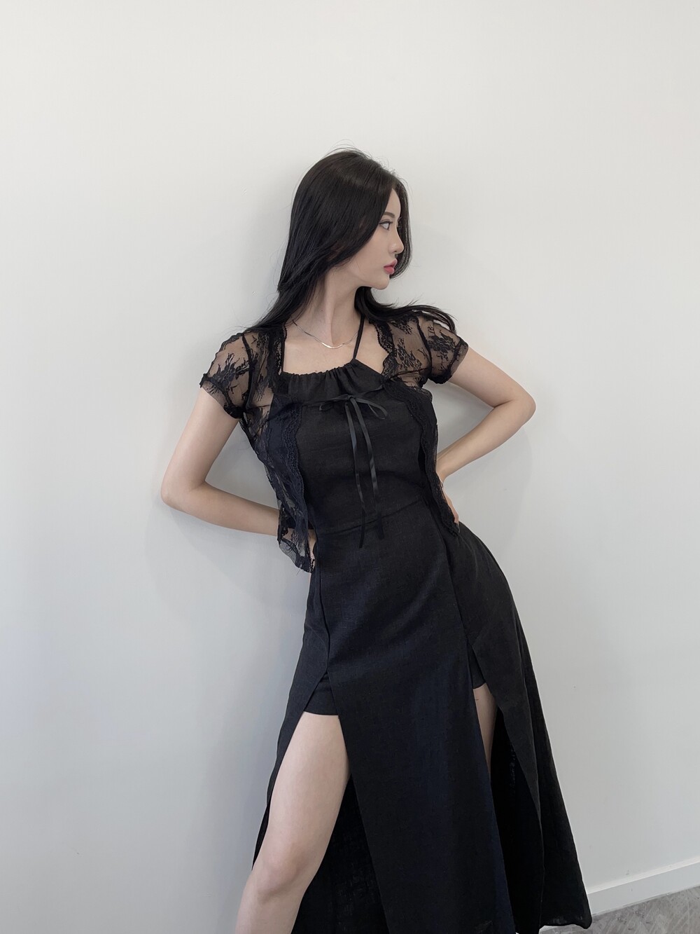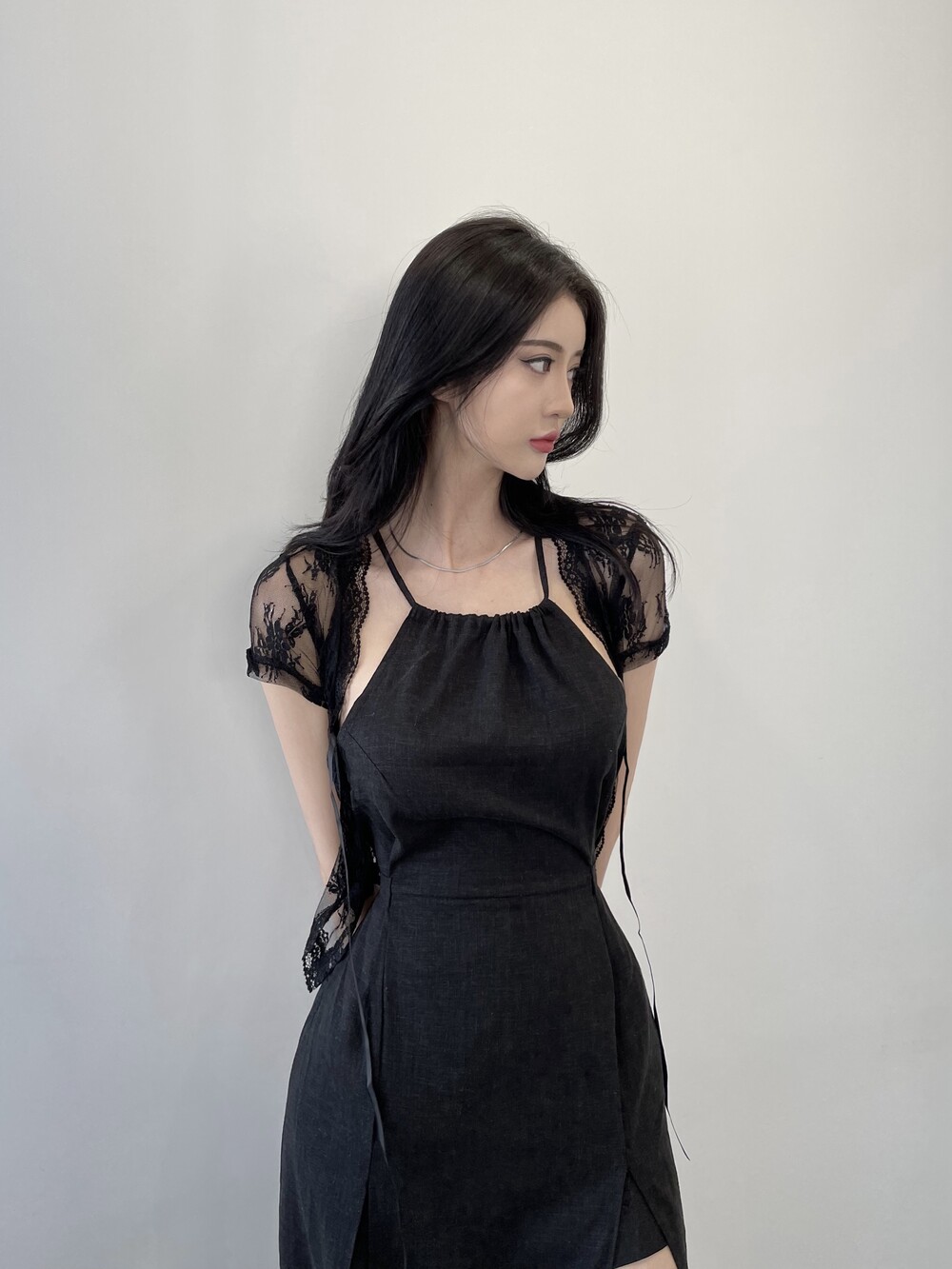 트렌디한 볼레로 디자인의 스트랩 메쉬 가디건
