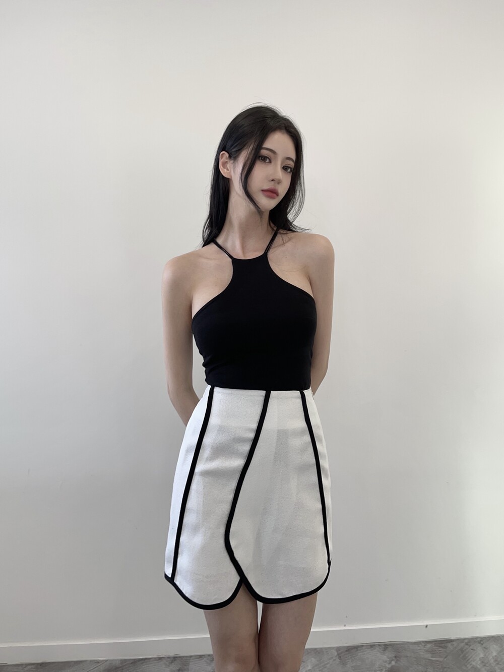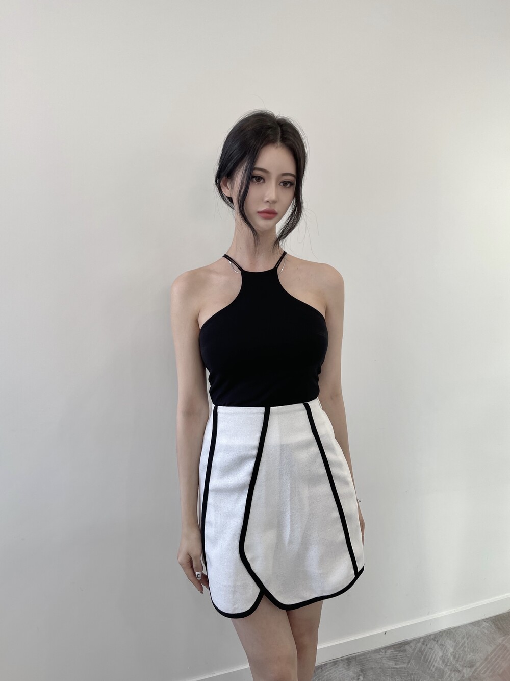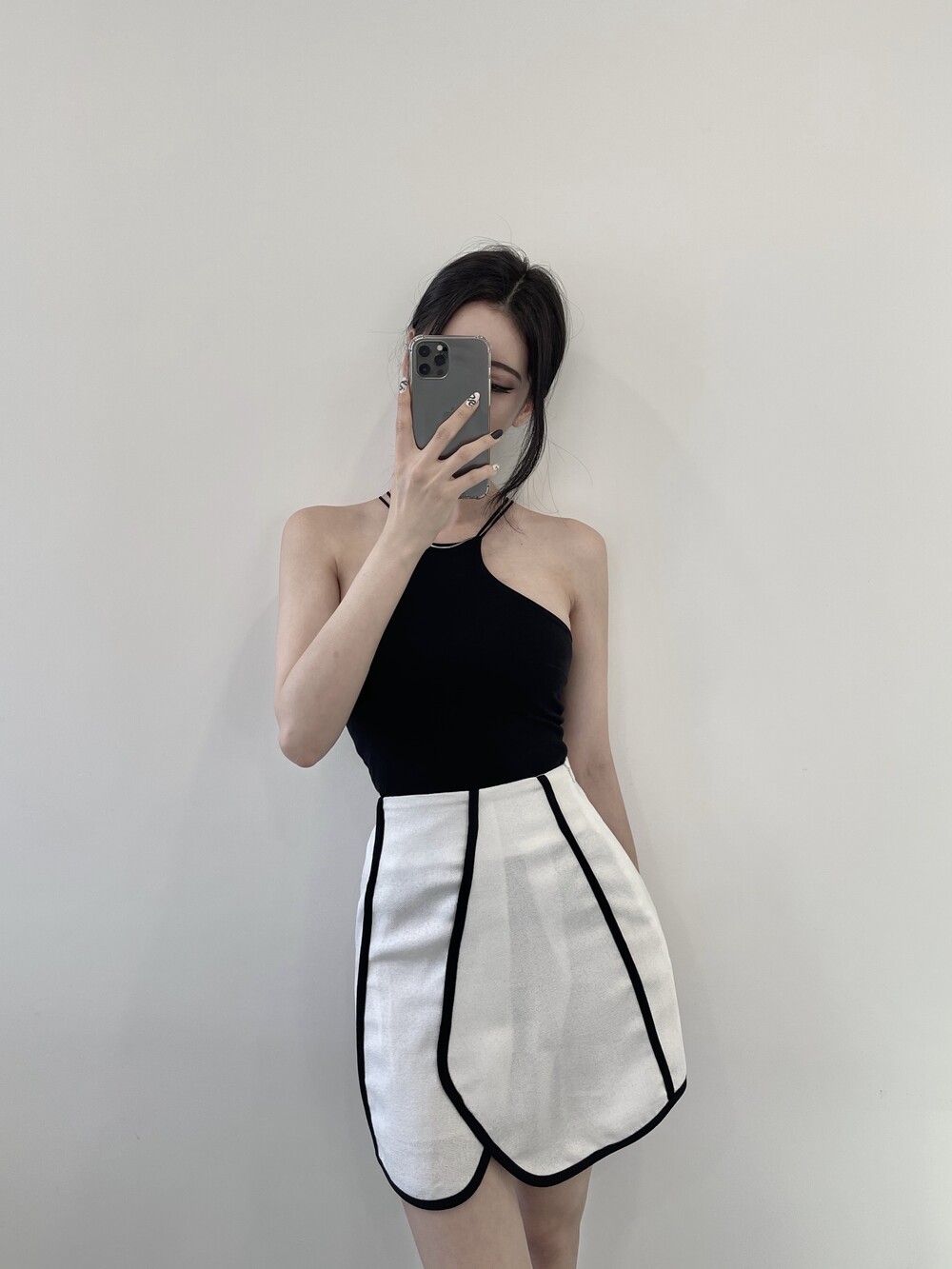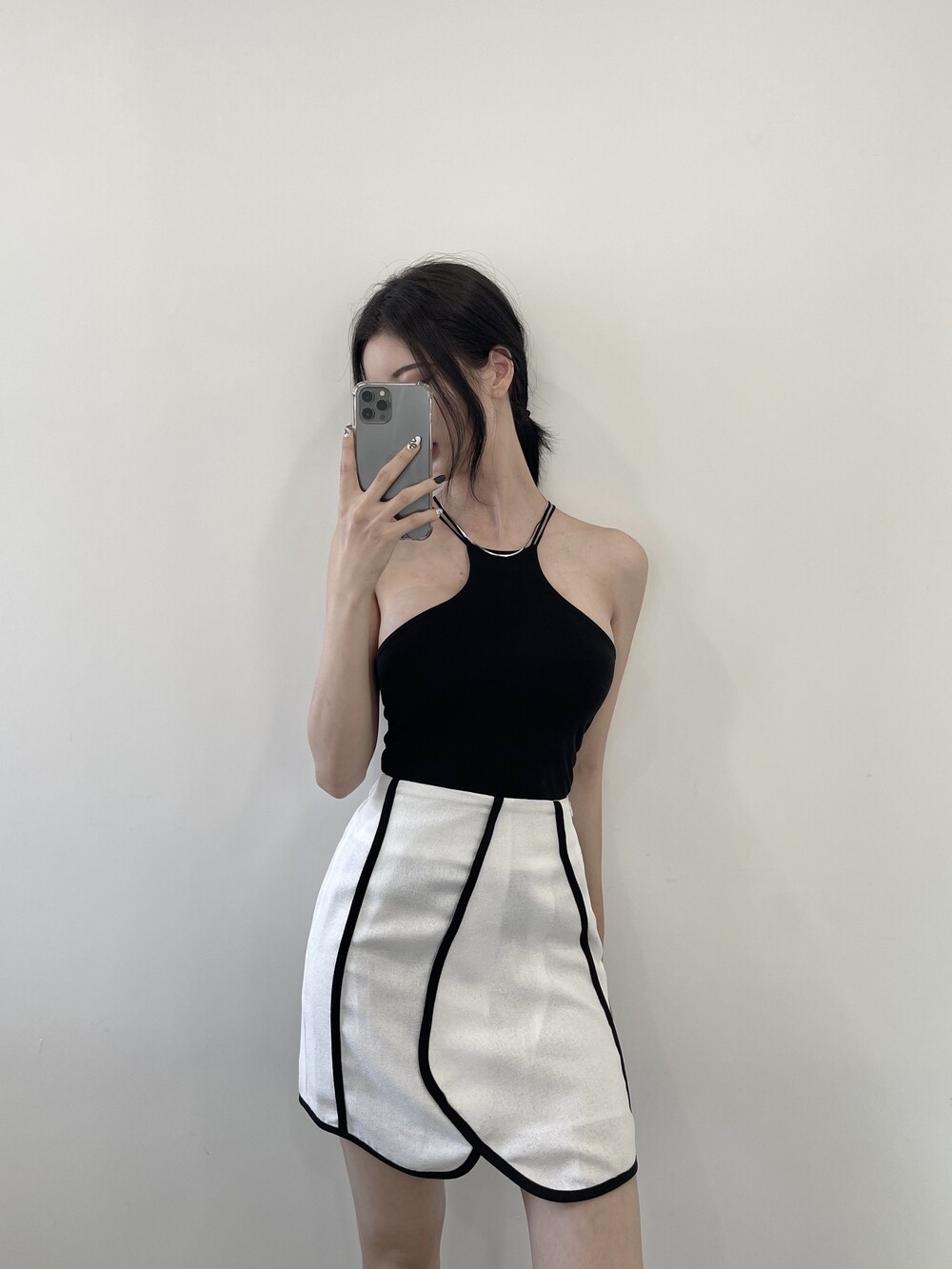 배색 테이핑 디자인으로 유니크한 스커트