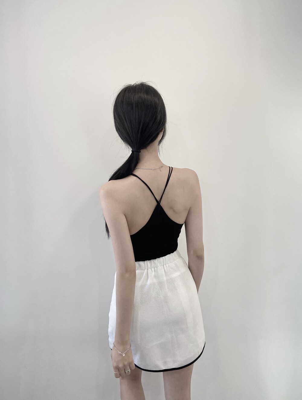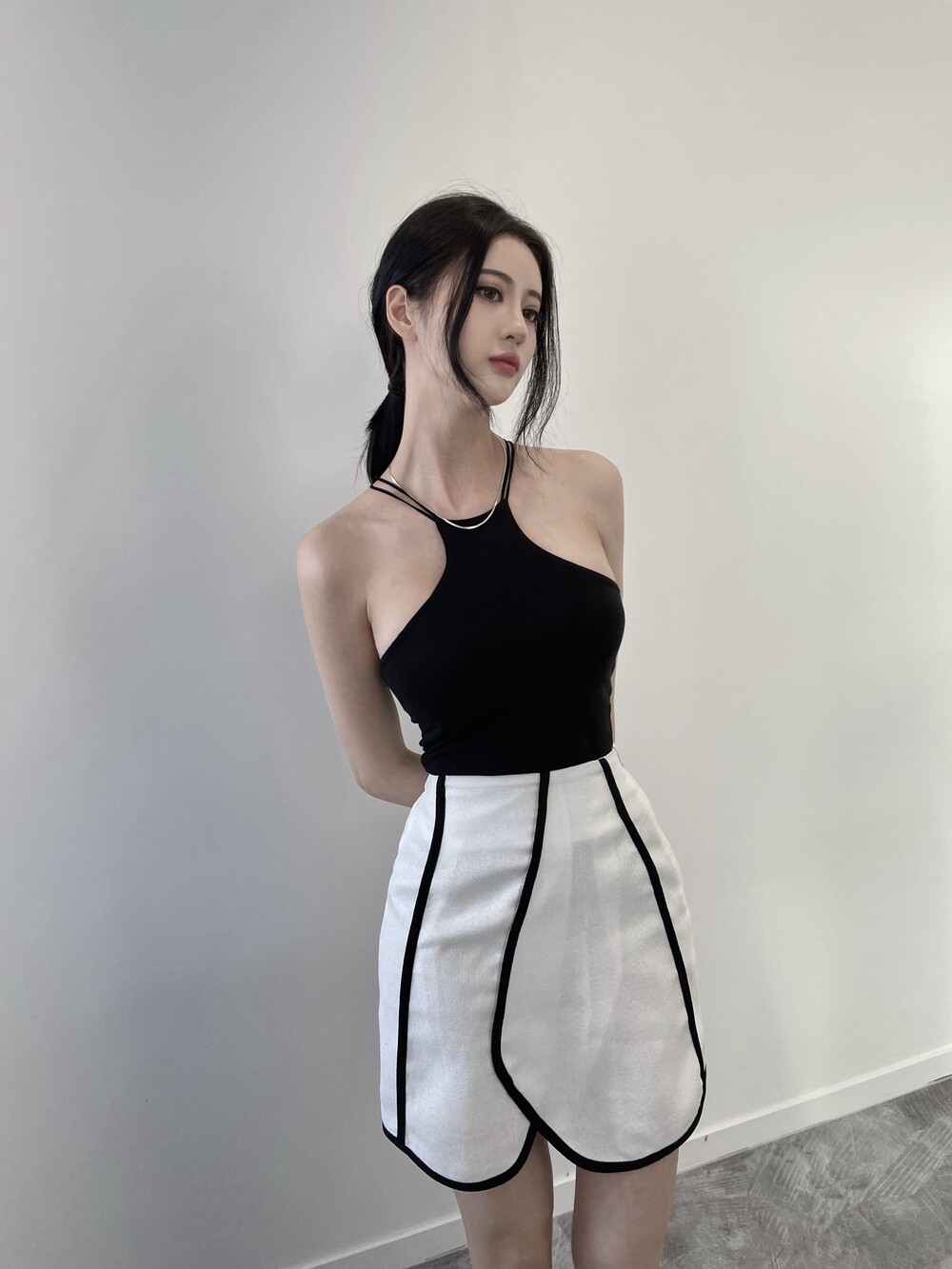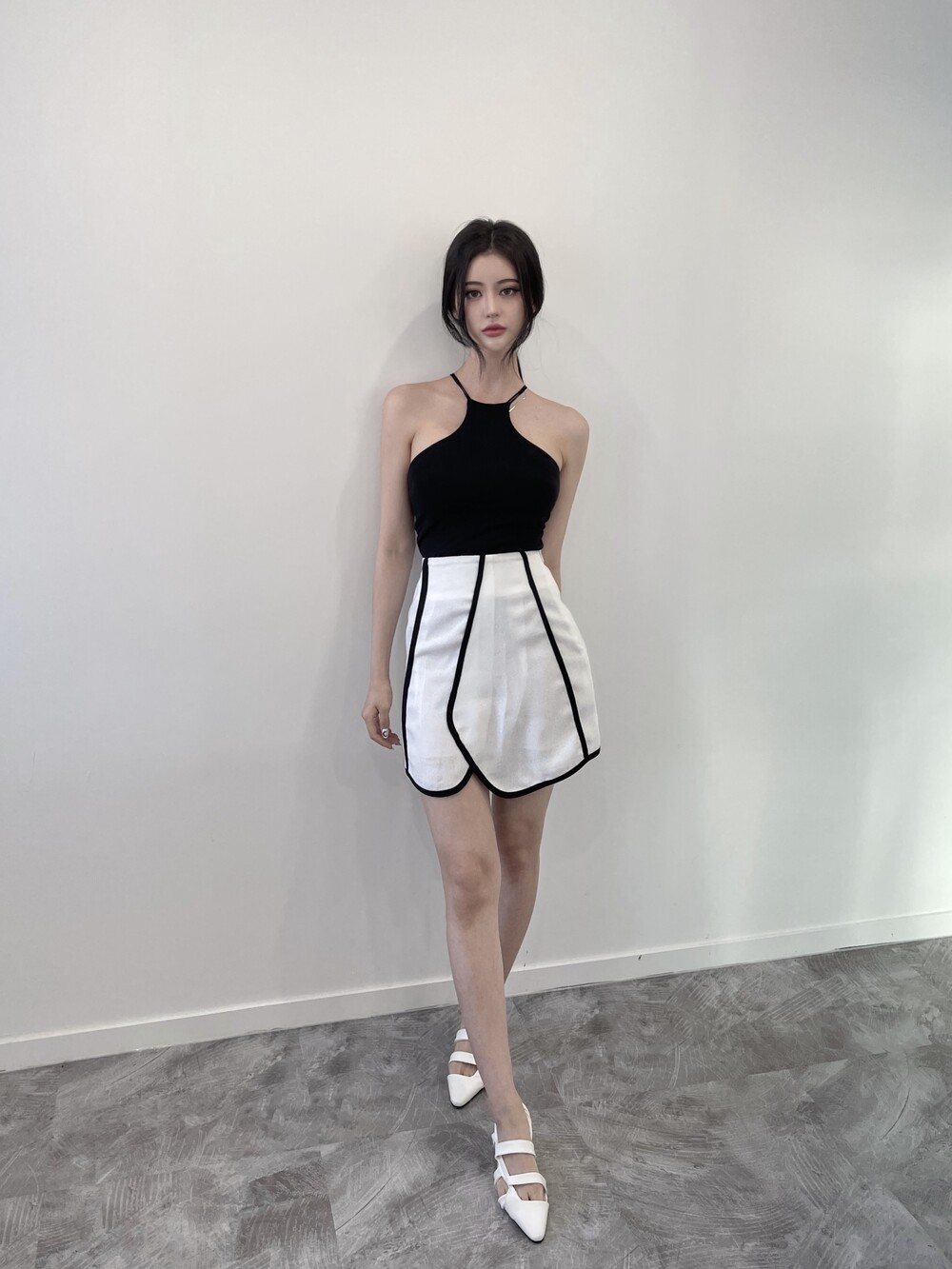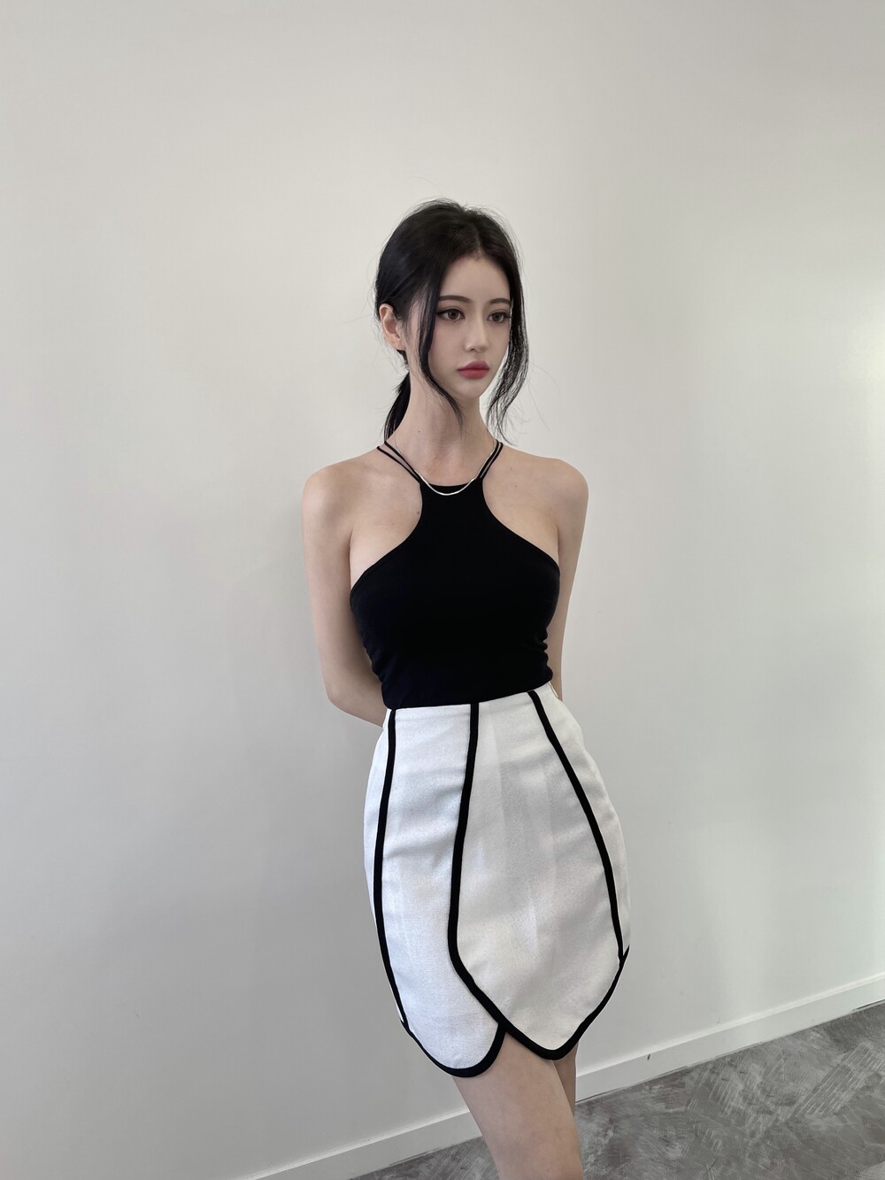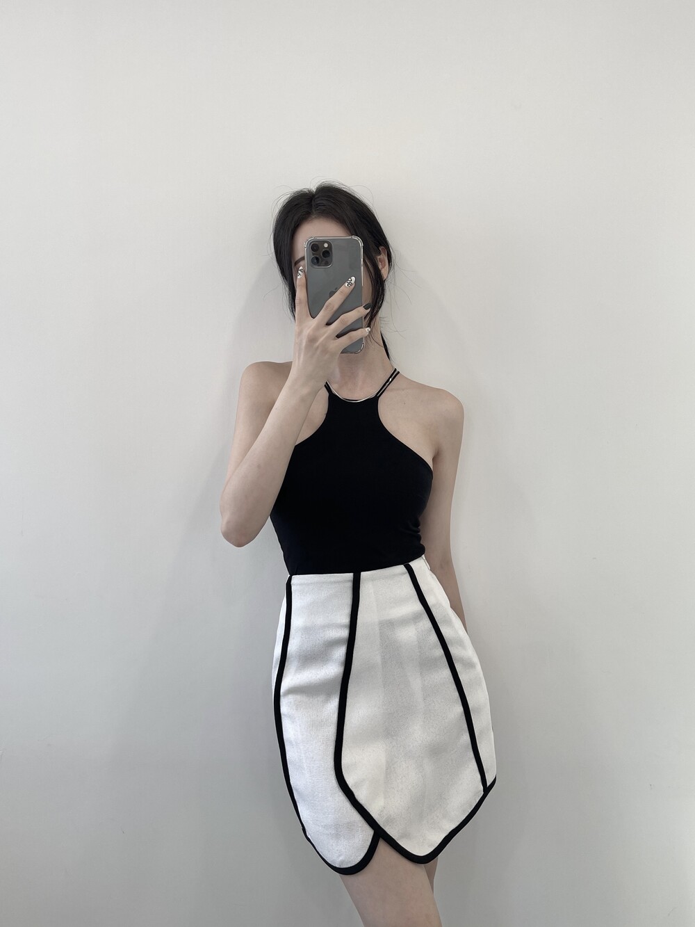 배색 테이핑 디자인으로 유니크한 스커트