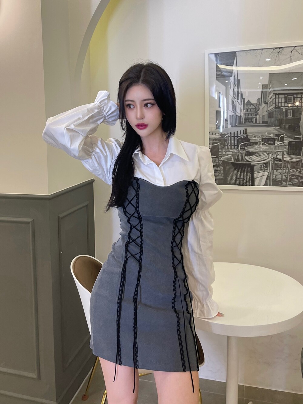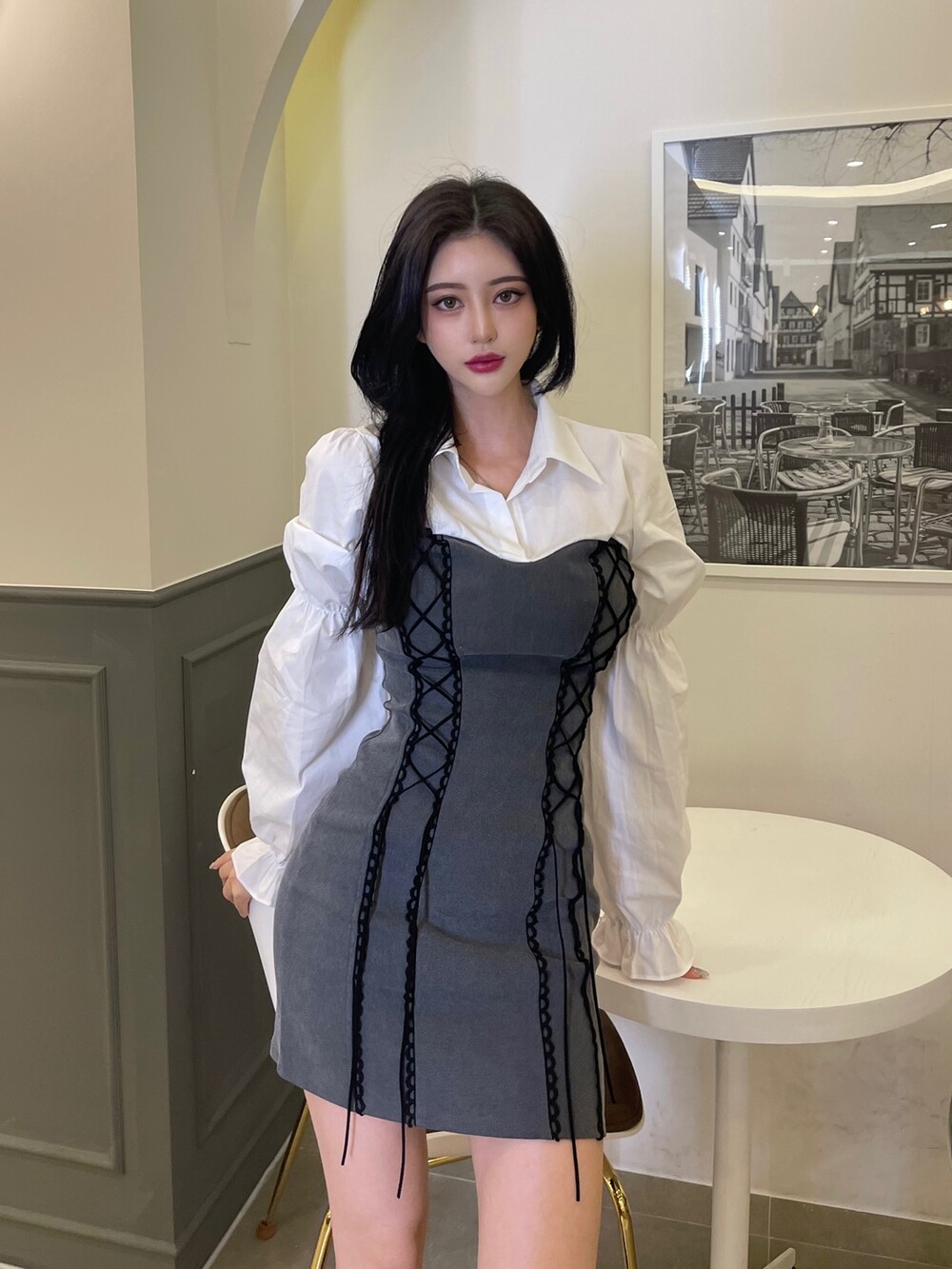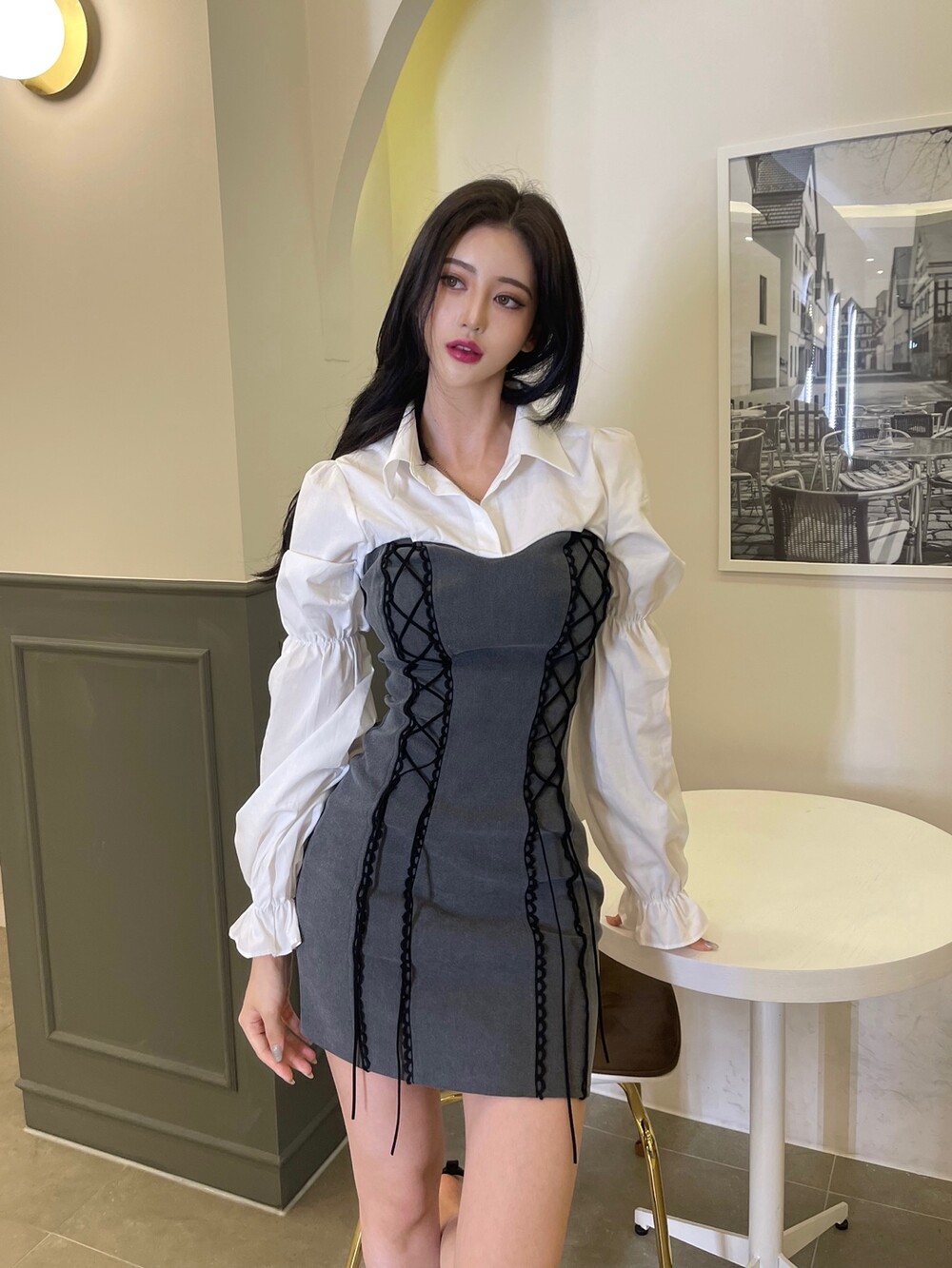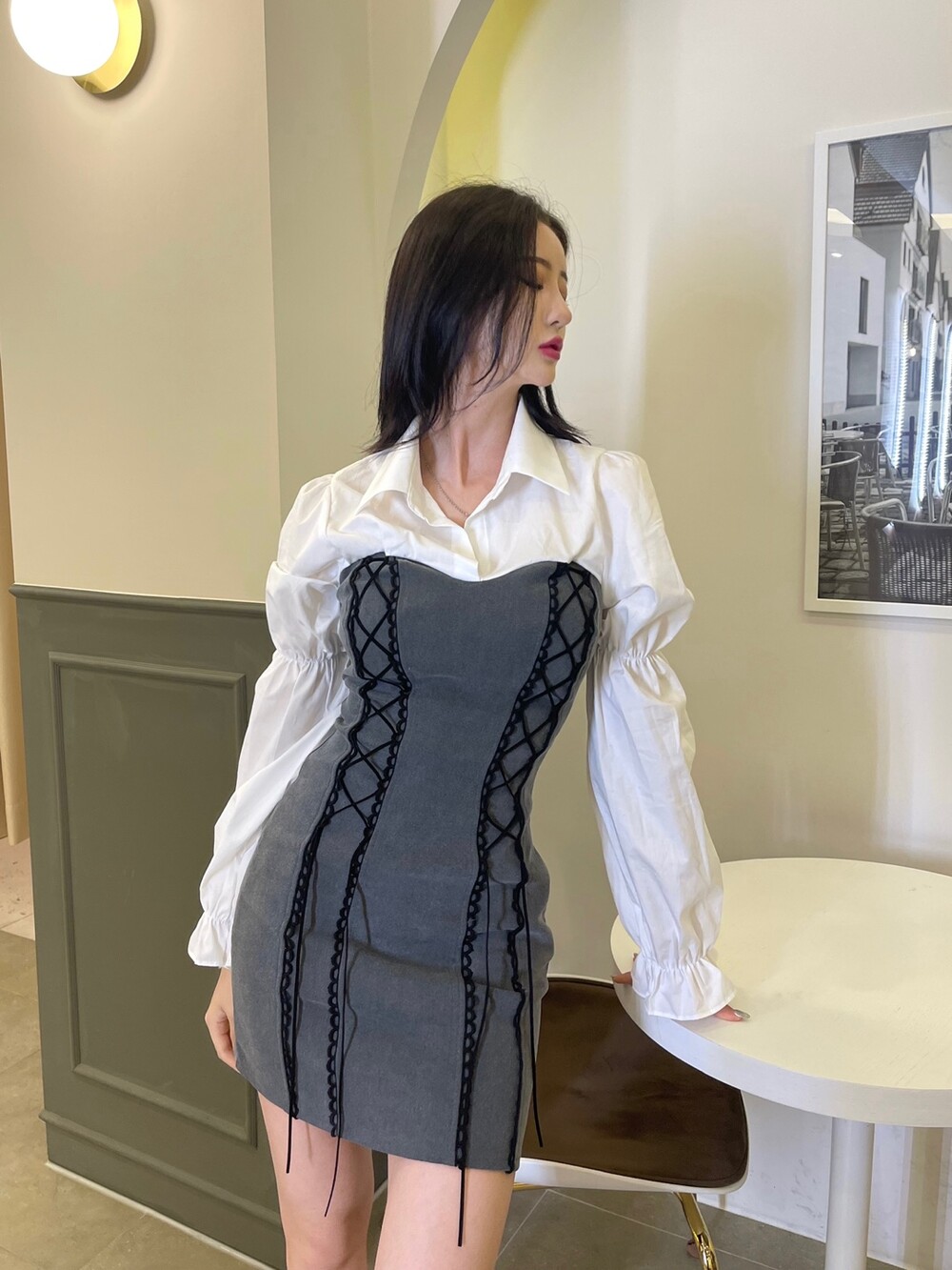 블라우스와 뷔스티에원피스가 레이이어드된 듯한 디자인